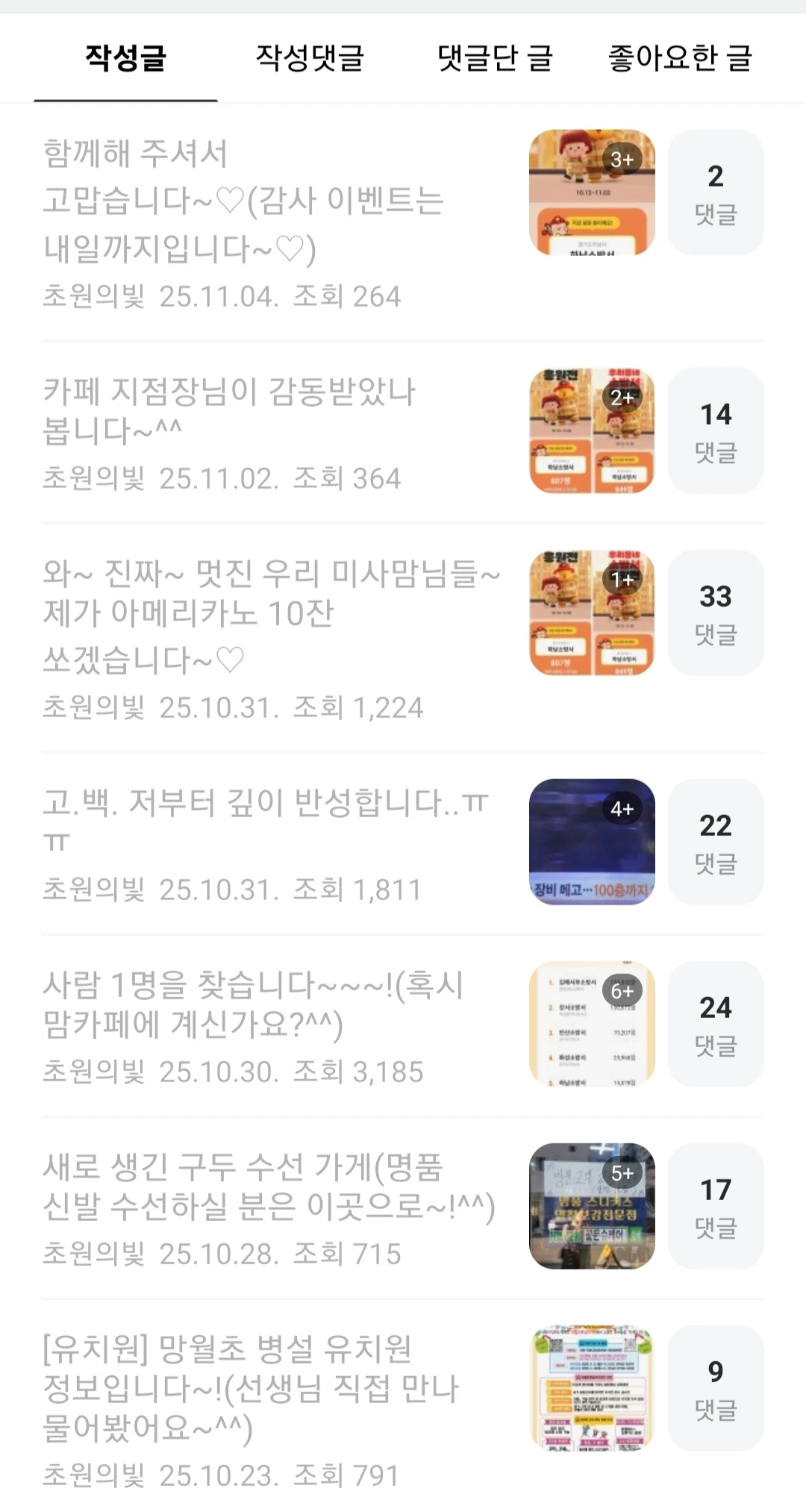 최근 지역 카페에 글을 쓰면서 가슴 따뜻한 이들과의 소통으로 아름다운 이 가을에 소중한 추억 하나를 더했습니다. 글 쓰는 즐거움을 알았으니 어떤 식으로든 살아있는 동안 쓰는 삶은 계속될 듯합니다.^^