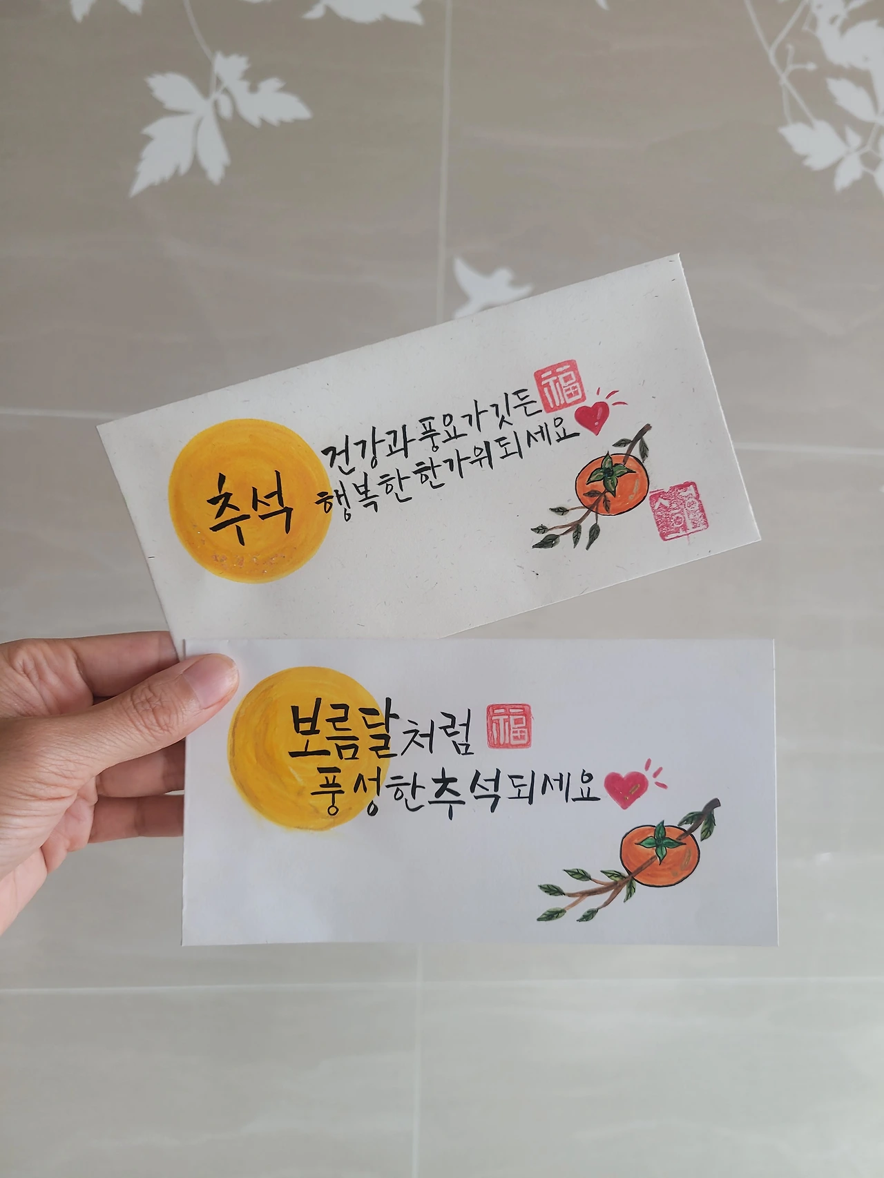 지난 추석 때, 용돈 봉투를 만들었습니다. 어머님이 봉투가 예쁘다고 한참이나 들여다보셨습니다. 이렇게 캘리그래피는 생활 곳곳에 유용하게 활용되고 있습니다.^^