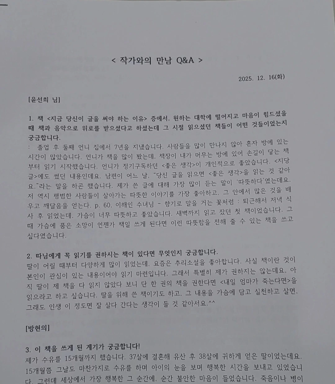 댓글로 응원해 주셨던 분 중 한 명이 독서모임을 하고 있다는 사실을 알게 되었습니다. 같은 지역에 사는 분이고, 모임 장소가 사는 곳과 가깝기도 하고, 책을 좋아하는 사람들의 모임이라 연말을 맞아 좀 더 특별한 시간을 선물해 주고 싶었습니다.