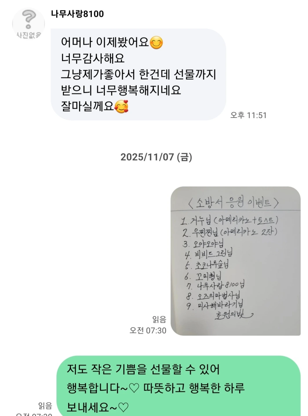 지역 맘 카페에 고생하시는 소방대원 님들을 위해 마음을 더하고 싶어 글을 썼던 적이 있었는데요.