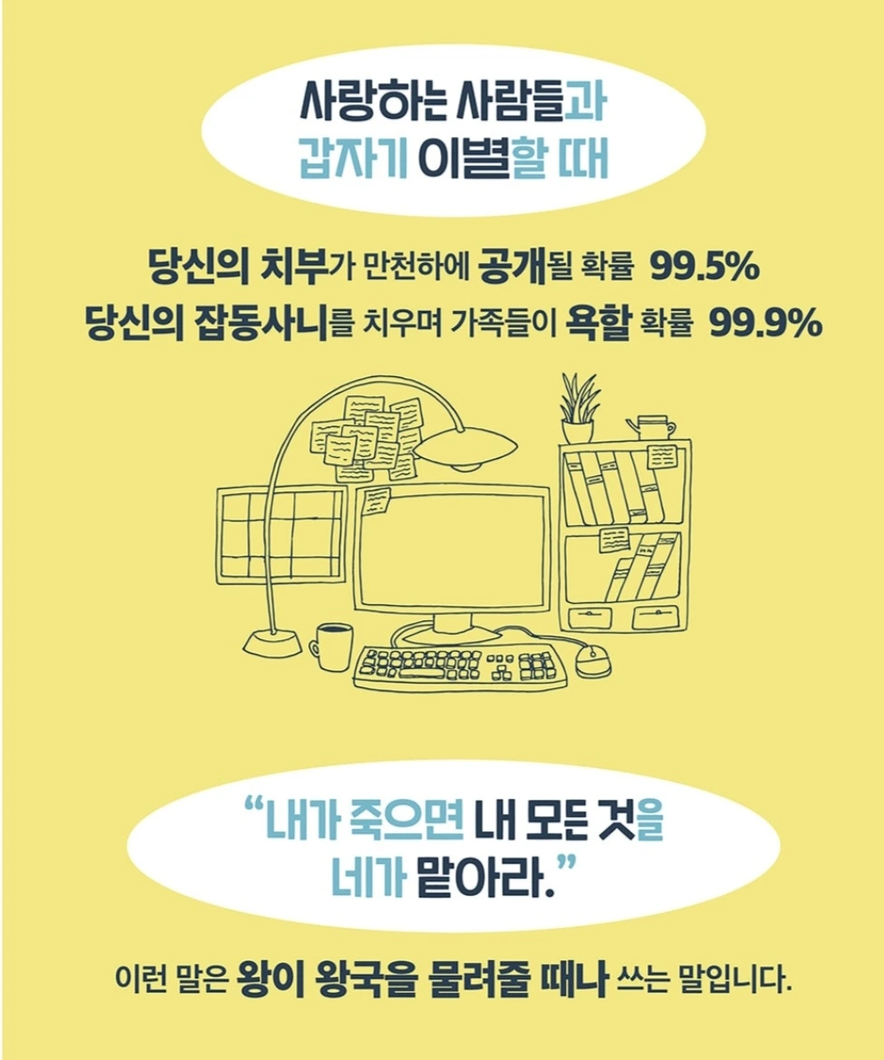 사랑하는 사람과 언제 이별하게 될지 모르는 순간을 대비해서 내 물건을 '지금' 미리 준비해 두는 습관,