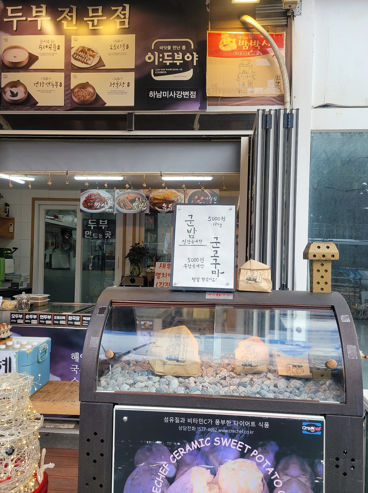 심플한 것이 더 어울릴 것 같아 멋을 부리지 않았는데 다행히 마음에 들어 하시니 보는 저도 기분이 좋았습니다. 순두부와 구운 계란을 사서 가려는 제게 사장님은 기어코 군밤 한 봉지를 손에 쥐어주었습니다. 그날 딸의 간식은 따뜻한 마음이 담긴 군밤이었습니다.