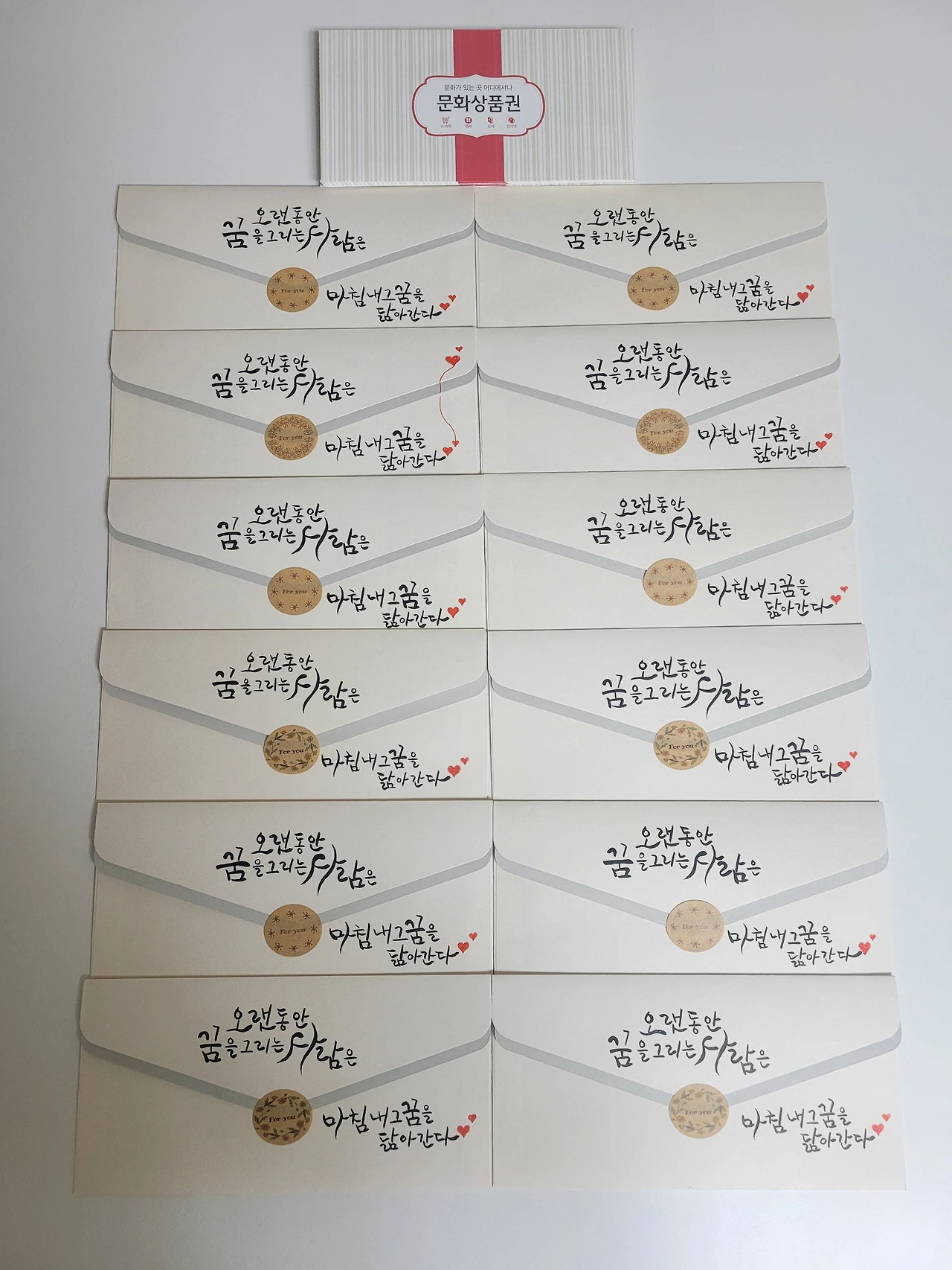 올해 약속을 지켰습니다. 마음이라도 더하고 싶어 제 인생 문장을 봉투에 직접 써서 준비했습니다.