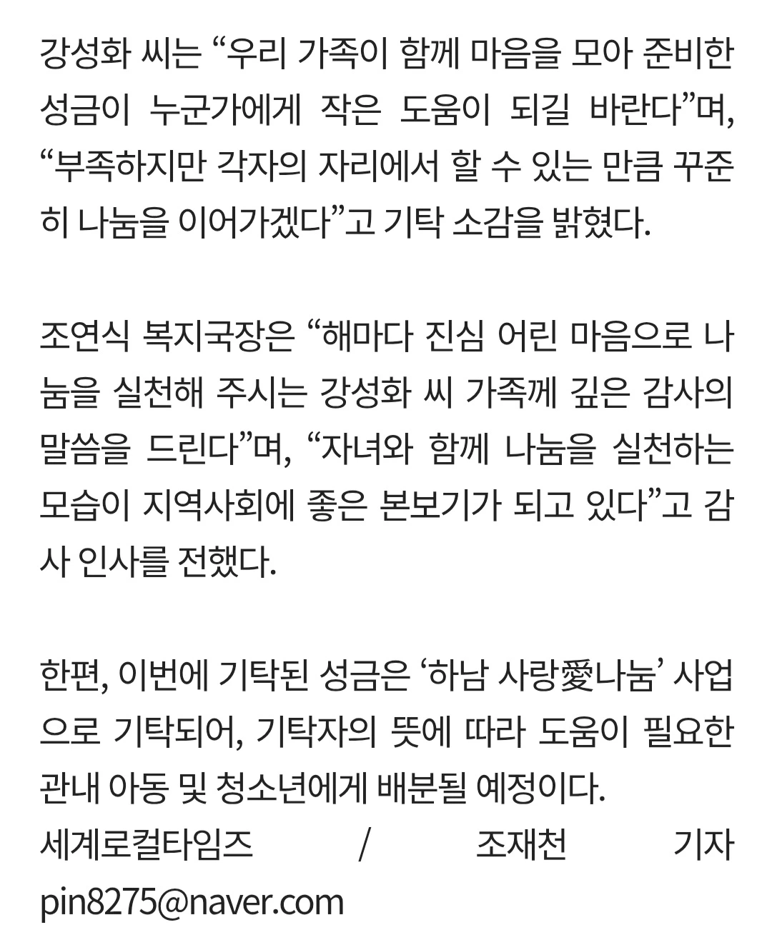 며칠 전 기탁식 보도 기사를 전달받았습니다. 이것이 이렇게 기사화될 일인가 싶지만, 그 또한 많은 것을 가지지 않았지만, 가진 것 안에서 나누고자 하는 그 마음을 귀하게 생각해 주셔서 그런 것 같습니다.