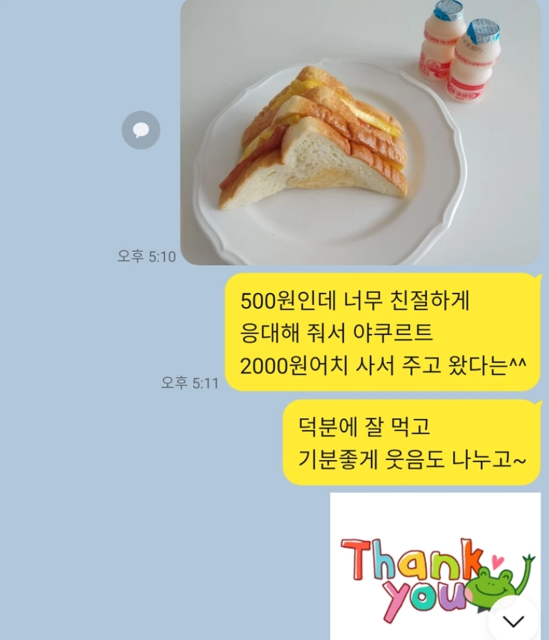 좀 전에 야쿠르트를 주고 갔던 사람이에요.