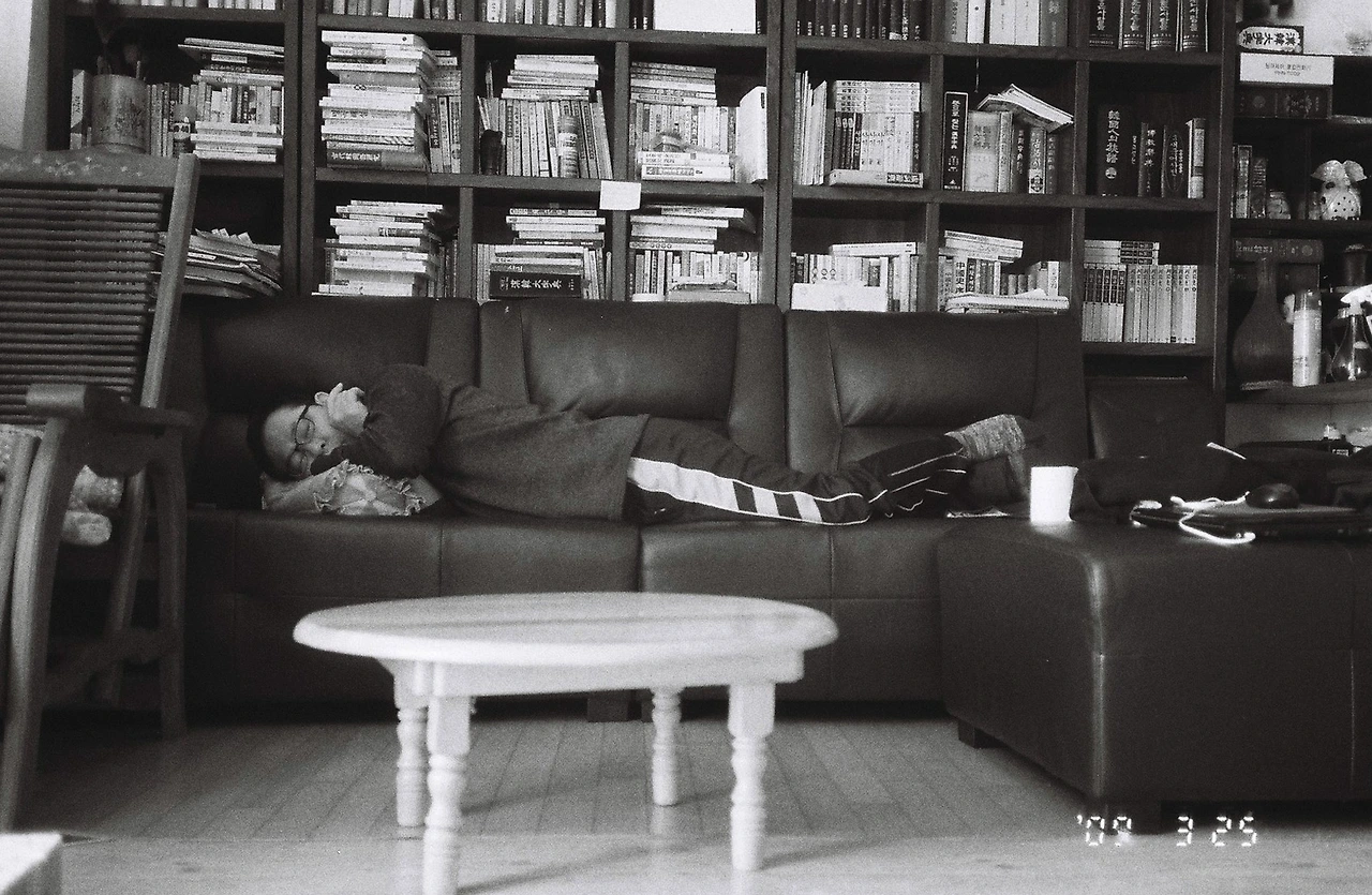 카메라가 고맙다고 느낄 때가 있다. 무엇을 어떻게 찍을지 고민하다 보면 자세히 보게 되고 그 피사체가 가족인 경우, 가족을 자세히 보게 된다. 카메라라는 어떻게 보면 3인칭으로 시점이 이동해서 가족을 천천히 자세히 관찰한다. 자주 보는 모습이었는데 자세히 보니 팔을 저런 모습으로 주무시는구나. 아버지는 지금 꿈속에서는 어떤 세상을 보고 계실까? 상상해 본다.