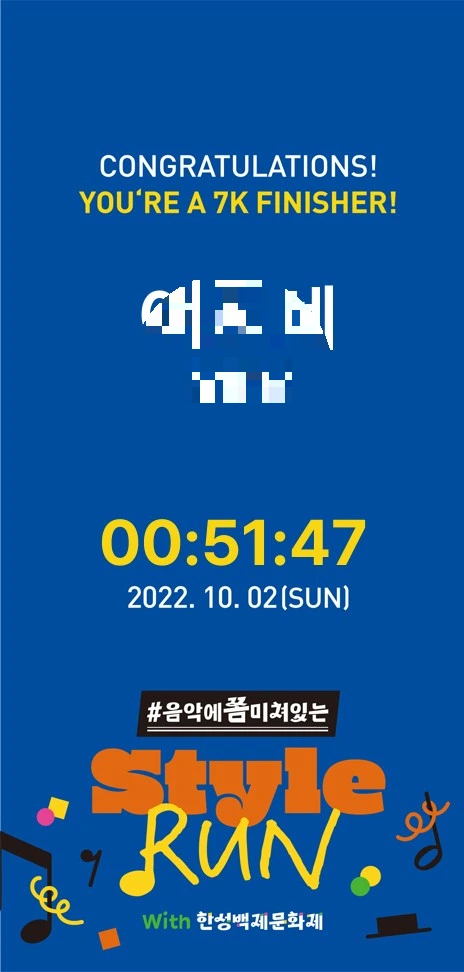 엄청난 인파와 함께 카운트다운에 맞춰 출발선에서 달리기 시작했다. 요즘은 날이 서늘해져 달릴 때 땀이 잘 안 났는데, 비가 오니 습도가 높아져 땀이 비 오듯 났다. 내 앞에 사람들이 각자 다른 속도로 뛰거나 걷기 때문에 내 속도를 일정하게 유지하려니 앞에 있는 사람을 제치고 달려야 할 때가 많았다. 그래서 그런지 평소보다 빠른 속도로 달리기도 했는데, 무리하지 않고 끝까지 잘 달리기 위해서는 앞선 사람을 제치는 재미를 느껴서는 안 된다고 생각했다. 사실 그런 재미를 느끼고 어쩌고 할 실력이 아니었을 것이다. 결승선을 넘을 때까지 멈추지 않고 잘 뛰었고 부상도 없었다. 나중에 달리기 어플을 보니 약간의 차이는 있었지만 일정한 처음부터 마지막까지 거의 일정한 속도로 달렸고, 전체 속도는 평소보다 조금 더 빠른 편이었다.