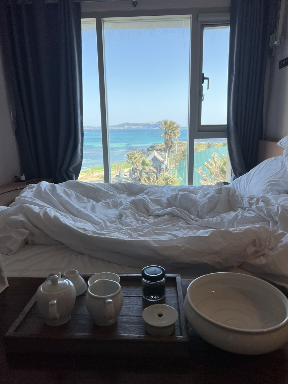 지난겨울 처음 이곳을 찾았을 때 별 것 안 하고 취다선 안에서만 있어도 하루를 근사하게 보낼 수 있다는 점이 마음에 들었다. 낮시간 동안 표선에 놀러 다녀오기도 했지만, 그냥 방에 돌아가 방해 없이 마음껏 책을 읽어도 좋았다. 이번에는 일정이 3박 4일로 짧기도 했고 핸드폰을 꺼두고 마음껏 책을 읽다 낮잠을 자려고 마음먹고 내려갔다. 월요일에 잠깐 핸드폰을 켰다가 어김없이 일을 하게 되는 몇 시간이 있었는데, 그 이후 다시 핸드폰을 끄고 온전히 나만의 시간을 집중해서 보낼 수 있었다.