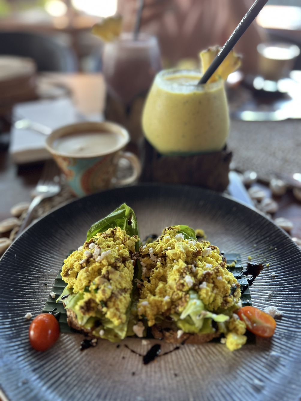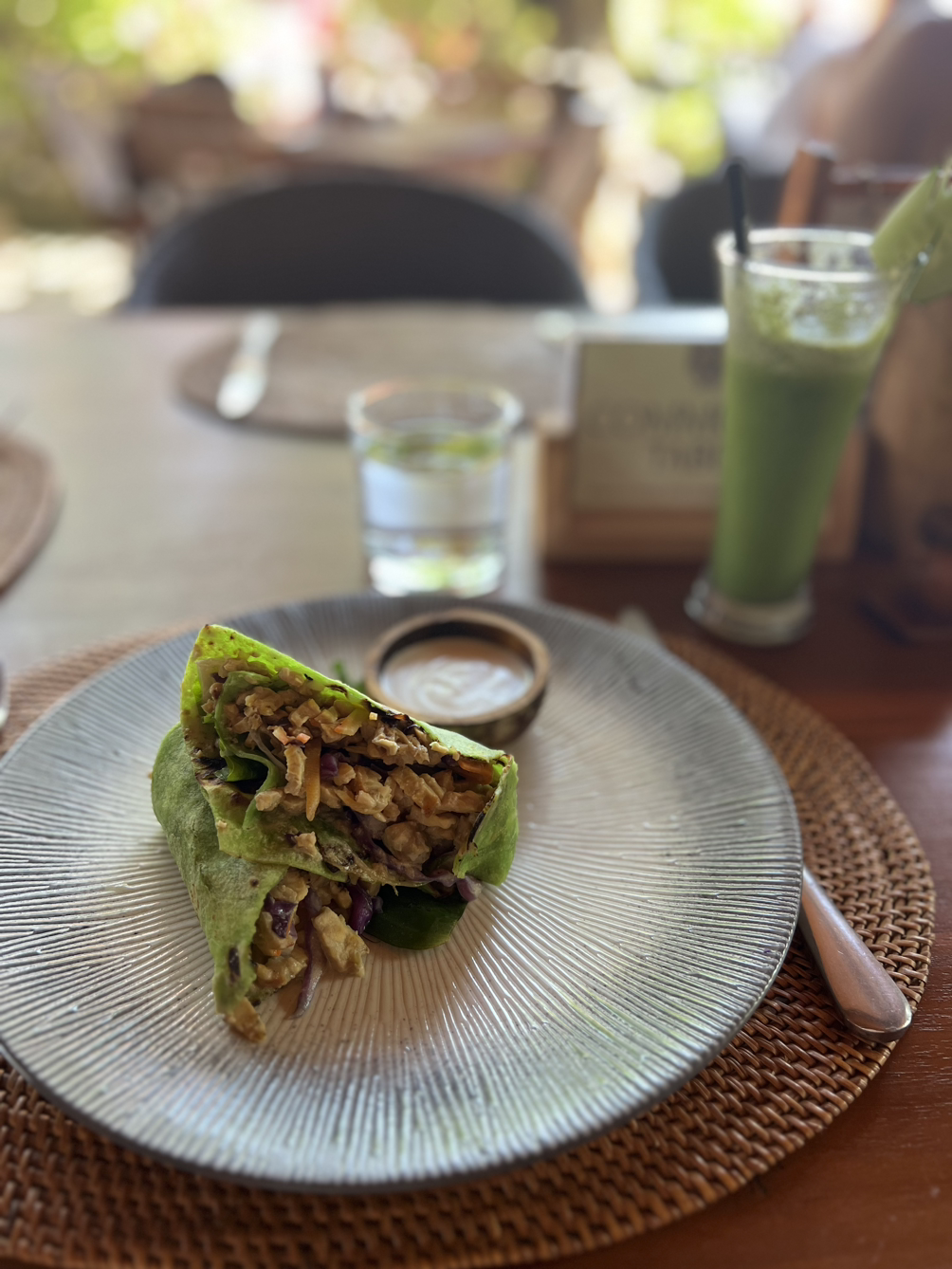 마지막 이유는 가공식품이 배제된 자연식물식에 가까운 식단을 먹기 때문에, 내 몸에서 필요한 정도를 먹고 나면 더 이상 식욕이 생기지 않는 것이다. 아침은 스크램블두부 토스트 또는 스무디볼을 주로 먹었고, 점심과 저녁은 템페랩, 아보카도롤, 채식 커리, 두부 타히니 볶음 등과 밥을 먹었다. 가끔 인도네시아식 볶음밥과 다진 생선 사타이를 먹기도 했다. 팔라펠 버거와 붓다볼도 좋은 점심 메뉴가 되었다. 이곳의 식재료는 로컬 과일과 야채를 사용하며, 동네 어부들이 잡아온 해산물을 이용한다고 한다. 고기 메뉴는 없다. 비건 디저트는 에너지볼 한 종류뿐인 것이 아쉽지만, 음식은 반 정도가 비건 메뉴이고 나머지 반이 베지테리안 메뉴다. 그곳에 있는 메뉴를 모두 맛보는 것에 재미를 붙이기도 했지만, 결국 가장 좋아하는 메뉴가 생겨서 여러 번 반복해 먹게 됐다. 어쨌든 미량영양소가 풍부한 식단으로 삼시 세끼를 먹으니 가짜 식욕은 사라지고, 내가 필요한 만큼의 에너지를 섭취하고 나면 그 이상은 먹고 싶지 않았다. 지금까지 공부해 왔던 것들이 실제로 한꺼번에 내 몸으로 느껴지니 신기할 따름이었다.
