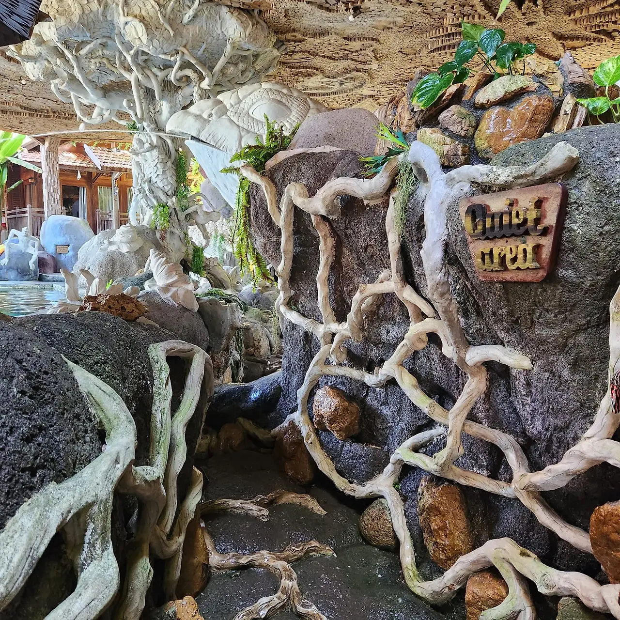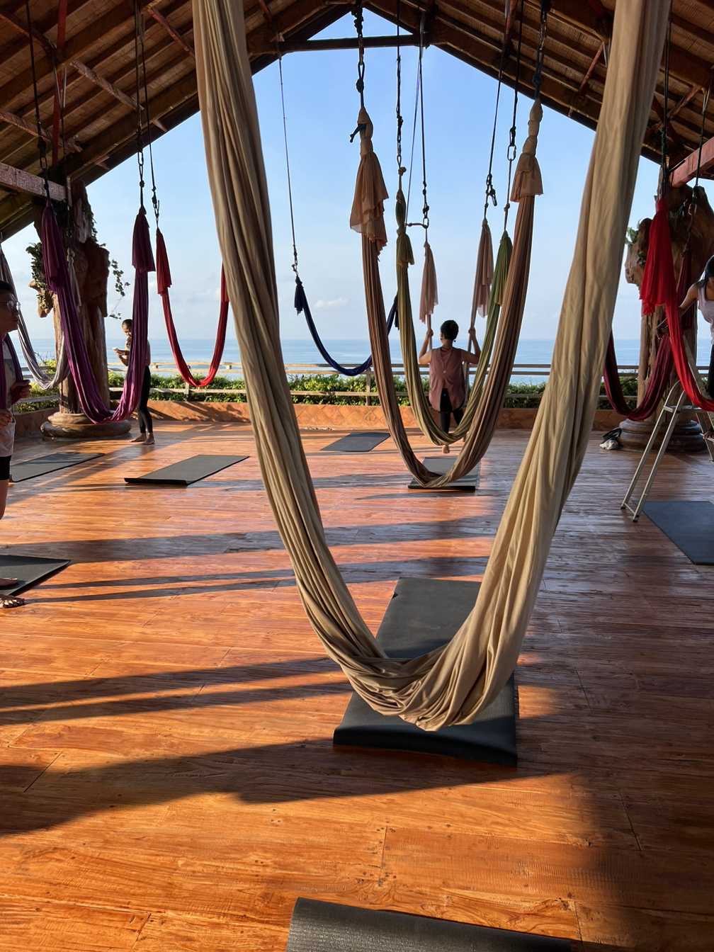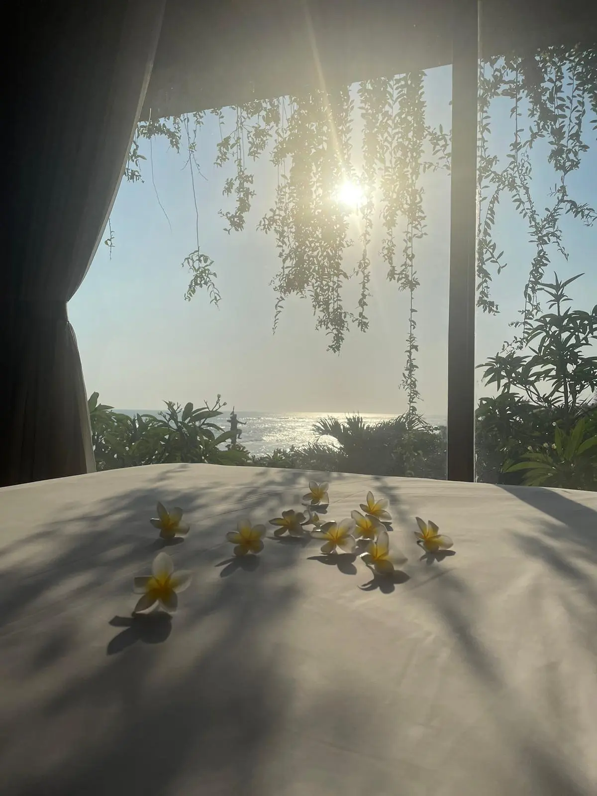 신체의 변화를 느끼는 것만큼이나 신기했던 것은 우다라의 바이브였다. 우붓에서도 요가 리트릿을 해본 적이 있고, 태국 치앙마이와 끄라비, 제주도와 양양에서의 리트릿을 다녀오기도 했지만 이곳이 만들어내는 바이브는 독보적이었다. 각 리트릿마다 특별한 분위기가 있지만 이곳은 말로 설명하기 어려운 분명한 캐릭터를 가지고 있었다. 모든 스태프들이 참여자들의 이름을 되도록 외우려고 해서 이름을 불러주는 것 등 서비스가 훌륭할 뿐 아니라, 이 리조트 곳곳의 인테리어나 구성이 그 어느 하나 의도되지 않은 것이 없는 점도 그랬다. 건물 전체가 나무뿌리가 감겨있는 듯한 구조로 되어있는 것부터가 압도적인 분위기를 자아내는데, 그중에서도 사우나와 자쿠지를 이용하기 위해 가는 곳은 이 나무 가지 같은 구조물이 굉장히 불편하게 되어있다. 사우나 끝에는 명상실인 '동굴'이 있는데, 이 불편한 구조들은 명상실로 가기까지 의식을 가지고 알아차림을 위한 훈련을 위해 설계된 것이라고 했다. 가장 꼭대기층에 있는 스파실로 가는 길은 바람이 불면 아름다운 종소리가 들리게끔 되어있고, 이곳에는 빨간 꽃이 피는 나무를 심어두어 자연스럽게 꽃길을 걸으며 종소리를 들을 수 있게 되어있다. 이 길을 지나 스파에 도착하면 온 동네가 내려다보이는 야외 스파를 즐길 수 있다. 요가를 하는 곳은 총 세 곳인데, 이 중 두 곳은 모두가 참여하는 요가를 위한 공간이고, 가장 작은 요가실은 지도자과정(TTC)을 위한 곳이다. 큰 요가실은 모두 바람이 통하게끔 설계되었으며 석양을 보며 명상이나 요가를 할 수 있도록 지어졌다. 모든 객실 또한 각기 다른 캐릭터를 가지고 있다. 나는 작은 정원이 있는 방을 배정받았다. 지내면서 친해진 이 중 가장 행운이 가득했던 R은 침대에 누우면 석양과 달, 그리고 바다를 한눈에 보는 방을 배정받아 매일 밤 잠들기 전, 그리고 아침에 눈을 떠서 신에게 감사 기도를 올렸다고 한다.
