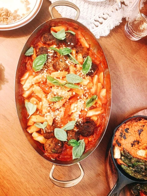 - 토마토소스에 버무린 가지 미트볼과 생면 파스타