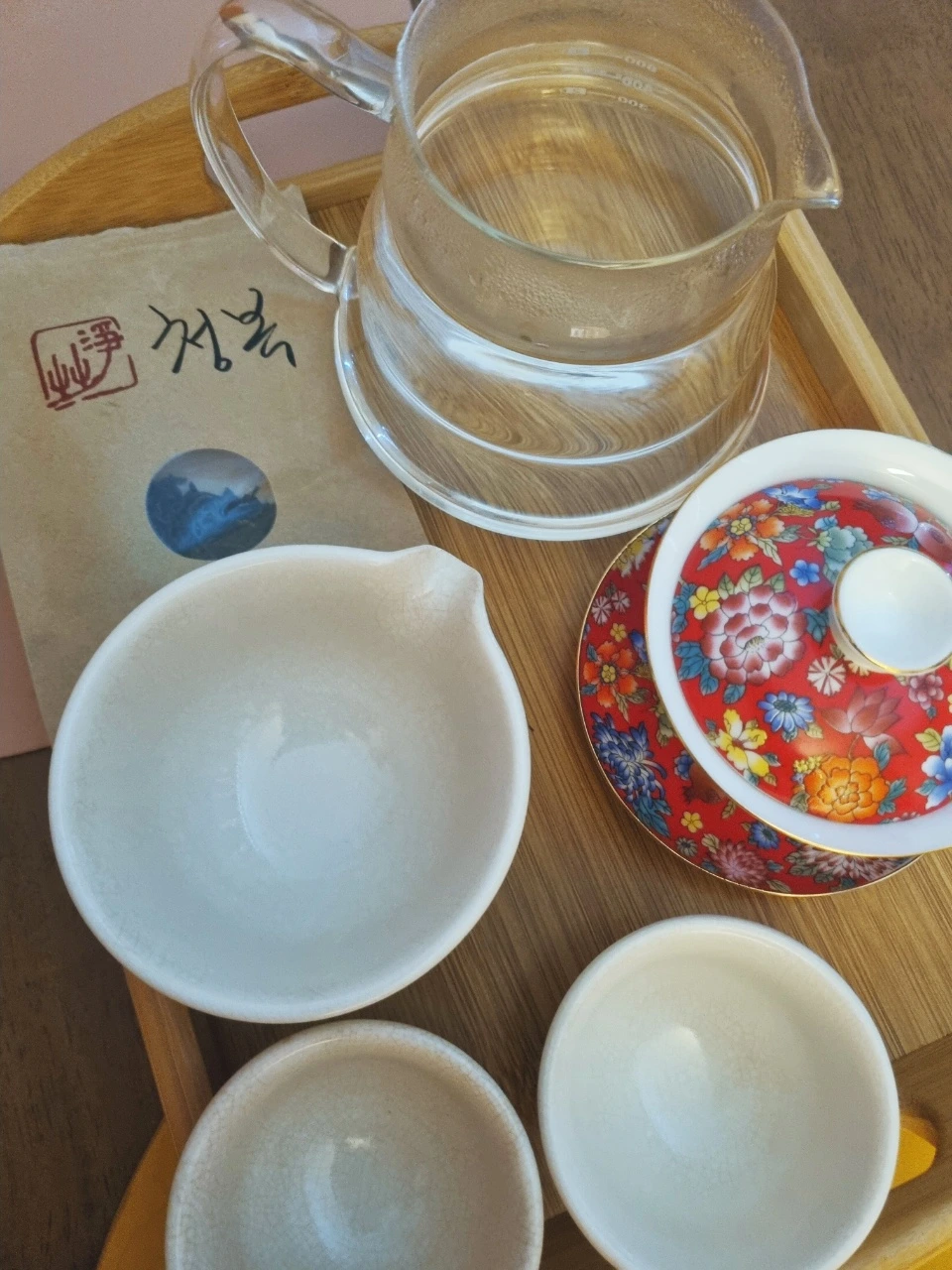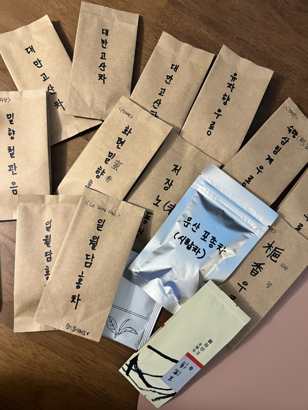 어찌 되었건 아침에 차를 마시겠다고 선언한 이후, 감사하게도 다기와 여러 종류의 차를 얻게 됐다. 내가 구매한 것은 녹차 한 종류. 나머지는 선물과 나눔으로 채워졌다. 친구가 홍콩에서 어렵게 구했다는 예쁜 빨간 개완과 집 근처에서 구매한 보이차를 가지고 왔다. 한 때 대만에서 차 유통을 하셨던 타히션 춤 선생님은 대만 우롱차와 홍차를 종류별로 선물해주셨다. 덕분에 차를 담아두는 나무상자가 꽉 찼다. 오랜만에 켠 당근 어플에서 30초 전에 올라온 '다기 나눔 합니다'라는 글을 보고 메시지를 보냈고, 나눔이 성사됐다. 밝은 표정의 어머님 한 분이 삼인용 다기세트에 더해 혹시 필요하면 가져가라며 1인용 다기세트를 더 챙겨 오셨다. 순식간에 다기와 차를 한가득 가지게 됐다. '하고자 하면 다 길이 생긴다'라며 너스레를 떨었지만, 그저 감사한 마음이다. 요즘 감사에 대한 보답은 늘 구운 빵이나 쿠키로 한다.