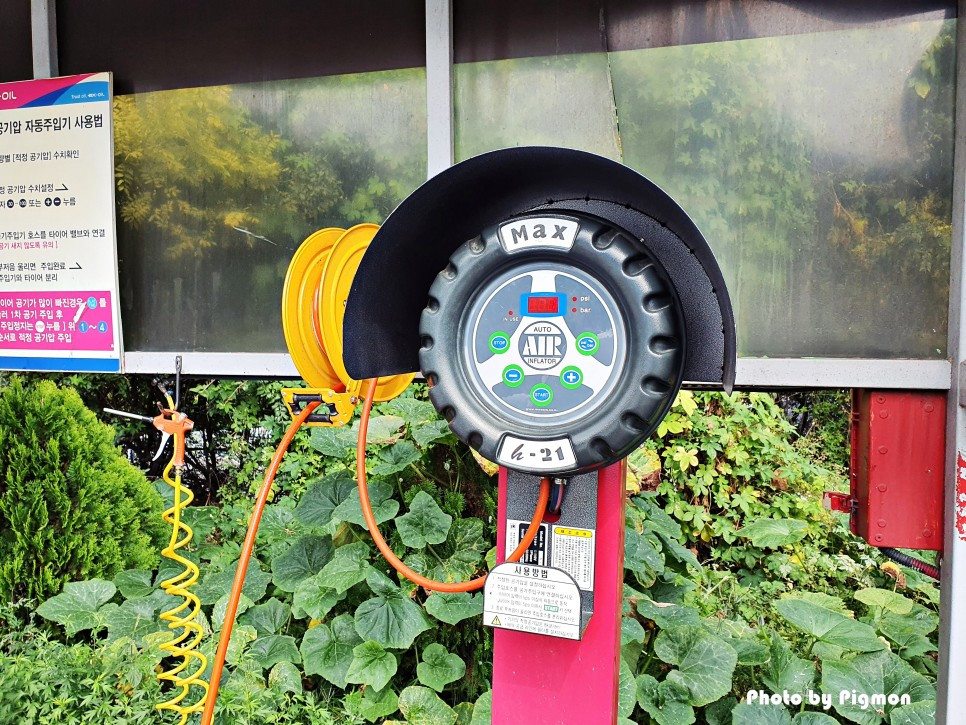 얼마 전부터 출퇴근 때 타고 다니던 중형 승용차의 타이어 공기압이 낮아 보였다. 주차장에서 차를 빼고 넣을 때 왠지 바람 빠진 튜브 같은 느낌이었고, 자동차 운전석 계기판을 통해서 보이는 수치도 네 바퀴가 32 psi에서 33 psi를 오락가락하고 있었다. (정상범위는 38psi내외)