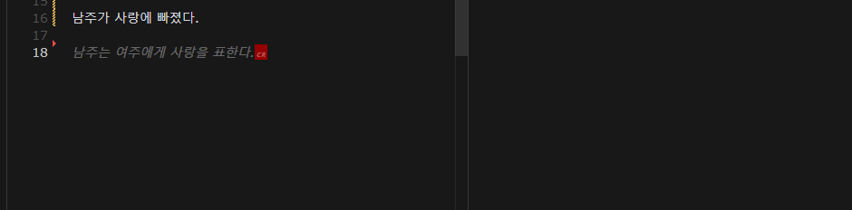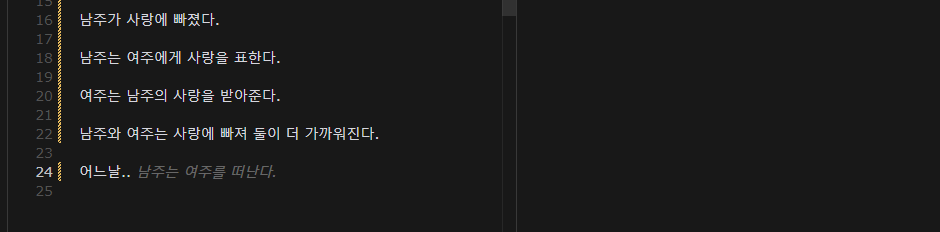 사용자의 16행 종료 이후, AI 모델이 이어질 내용을 예상해 제안
