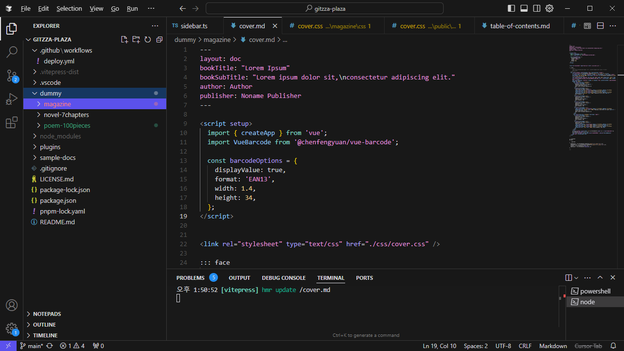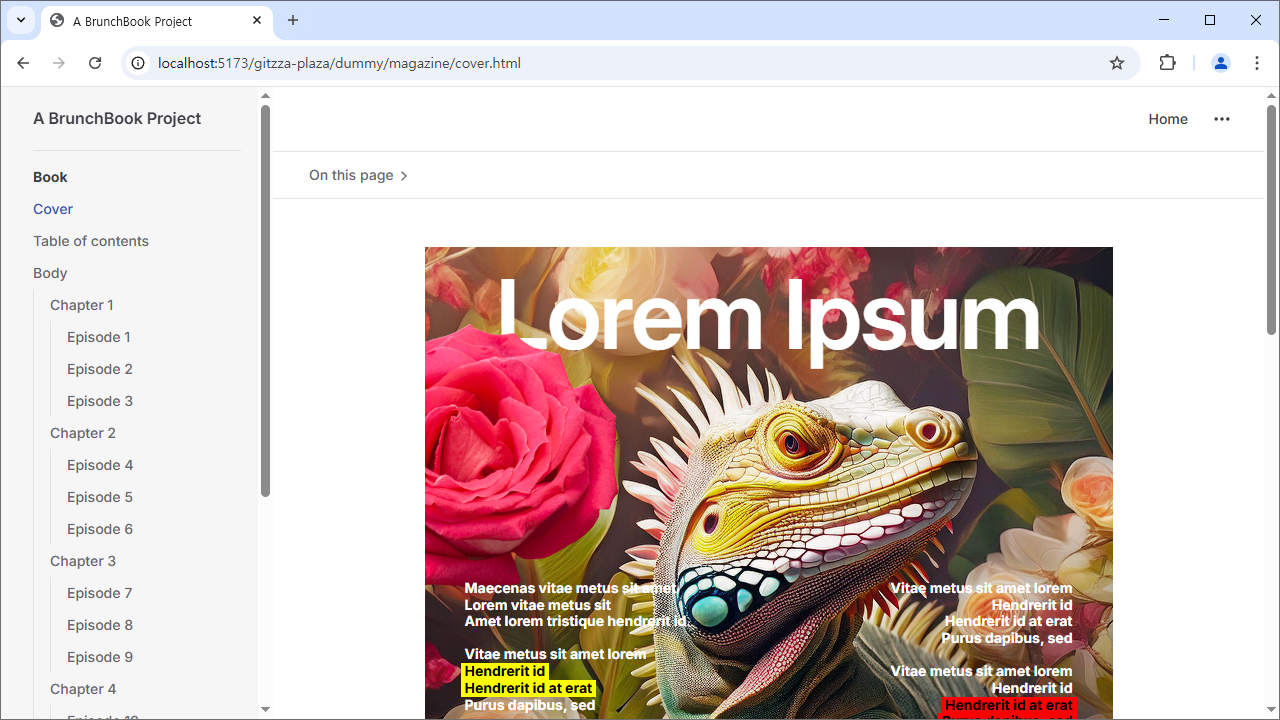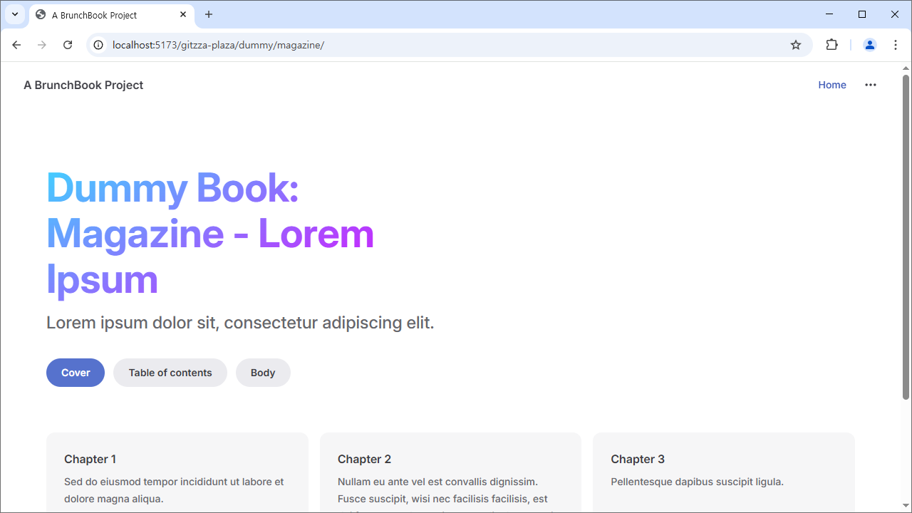 앞서 저장소의 루트에 dummy라는 폴더가 추가됐습니다. 그리고 그 아래로 매거진 목업을 위해 magazine 폴더가 생성되어 있고, 이 안의 구성은 sample-docs의 것과 비슷하다고 정리하시면 됩니다.