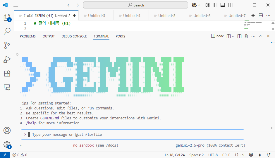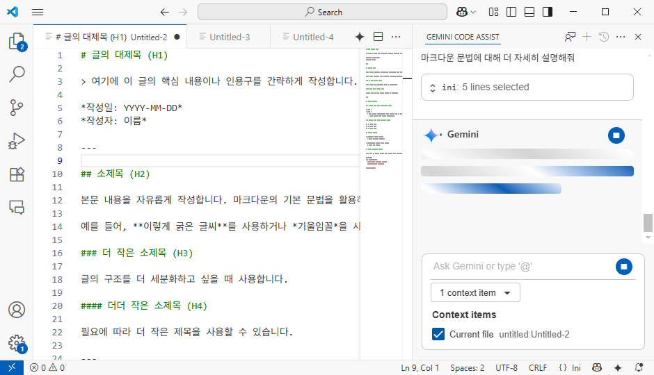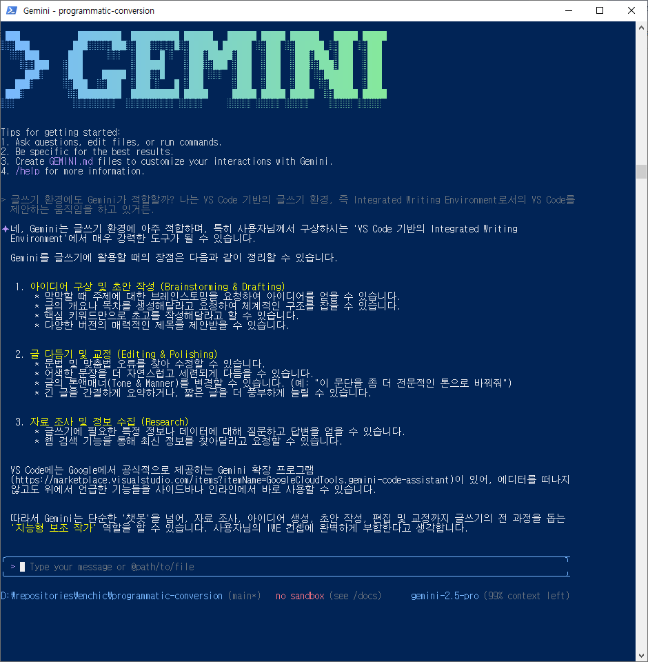 글쓰기 환경에도 Gemini가 적합할까? 나는 VS Code 기반의 글쓰기 환경, 즉 Integrated Writing Environment로서의 VS Code를 제안하는 움직임을 하고 있거든.