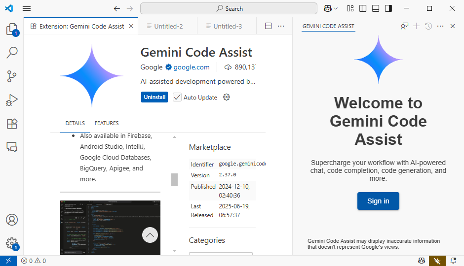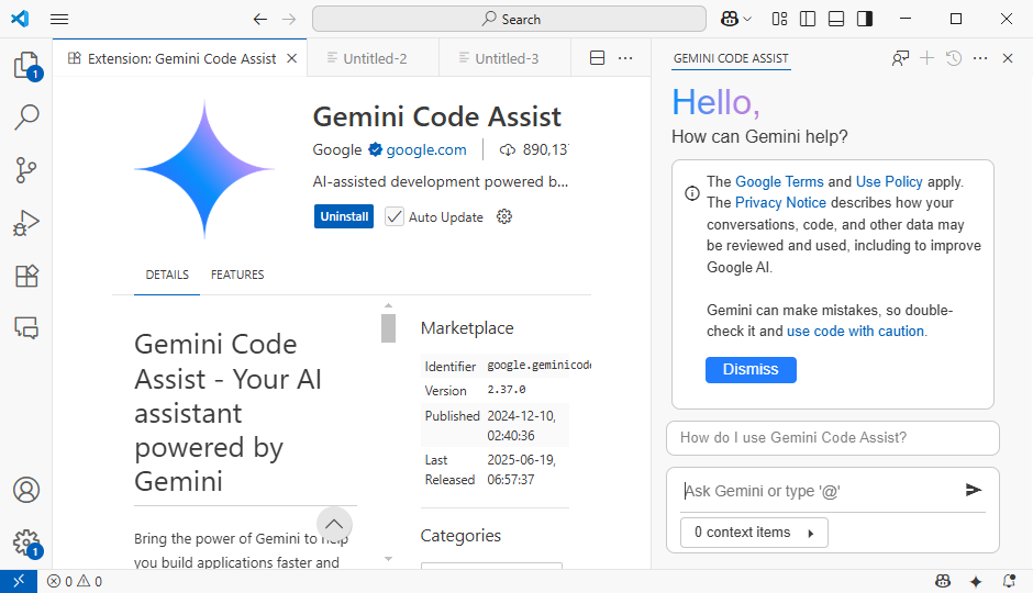 Visual Studio Code > Programming Languages > Gemini Code Assist