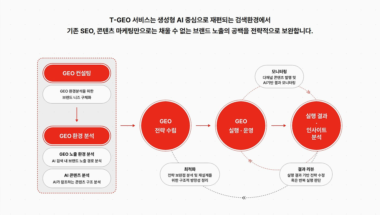 티엠씨케이(TMCK)의 T-GEO 같은 전문 서비스를 활용하는 것도 하나의 방법이다. 직접 실행하기 어려운 기업이라면, 전문가의 도움을 받아 체계적으로 GEO를 시작하는 것이 효율적일 수 있다.