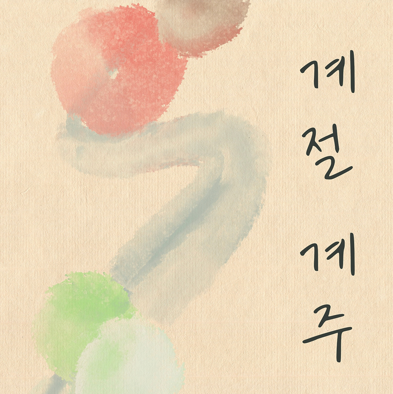 그림은 계절의 길에 겨울, 봄이 만나고 여름, 가을이 기다리는 장면을 색색의 동그라미로 표현해 봤습니다.