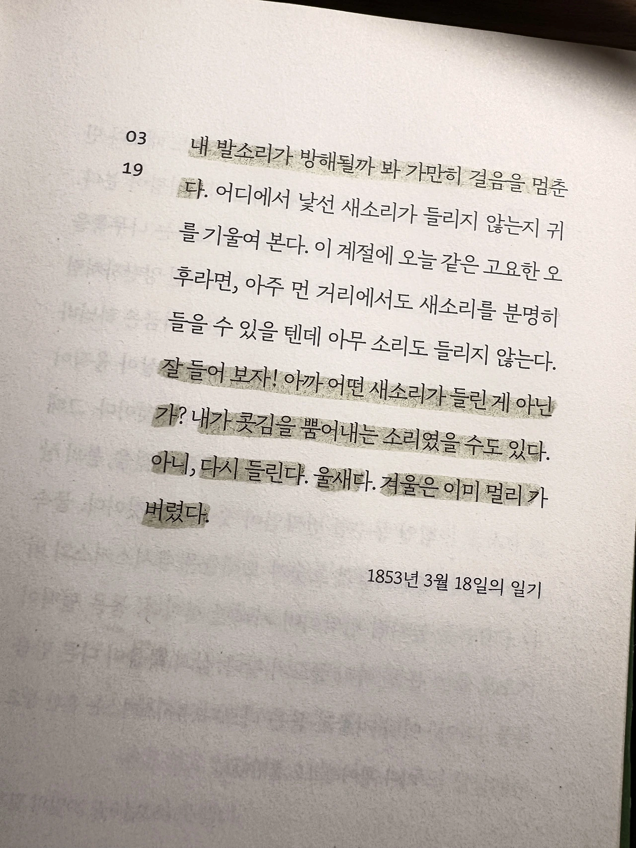 <월든>을 펼치기 전에 헨리 데이비드 소로의 1853년 3월 18-19일 일기를 읽어 본다. 170여 년 전의 오늘은 어땠을까?