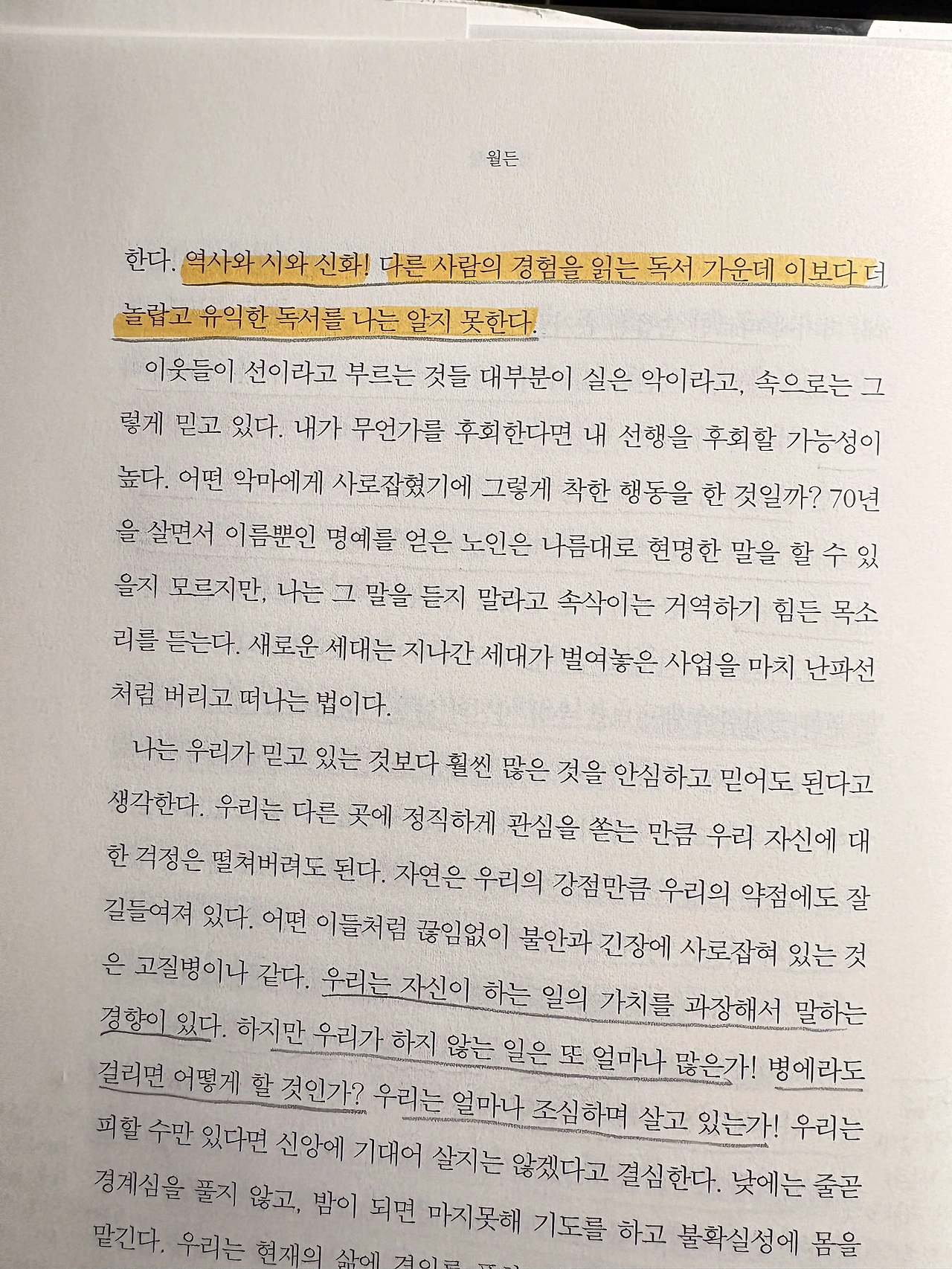<엄마의 유산>을 다 읽었으니 책으로의 여행에 새로운 연료가 필요했고 우리는 각자의 책장 속 책을 한 권씩 권했다. 그러다 같은 책이 있다는 것에, 우리가 비슷한 결이라는 것에 기뻐했다. 그 책이 바로 핸리 데이비드 소로의 <월든>. 병렬독서 독서초보자답게 나는 초반에 읽다 덮어 둔 <월든>을 그녀와 다시 읽기로 다짐했다.