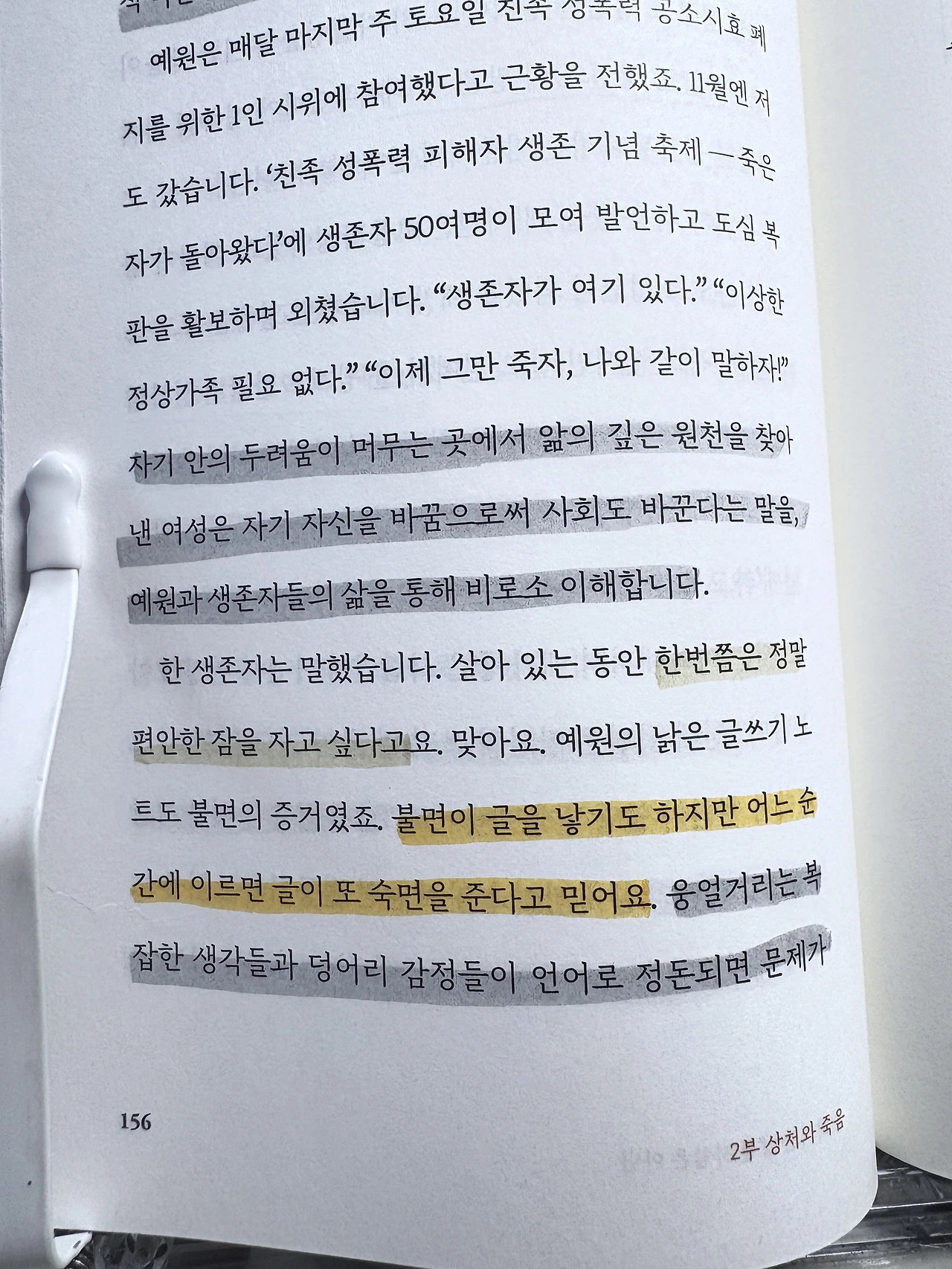 그녀는 성폭력 피해자로 자신과 같은 피해를 입은 열한 명의 여성들과 <죽고 싶지만 살고 싶어서>라는 책을 썼다는 소식을 전한다.