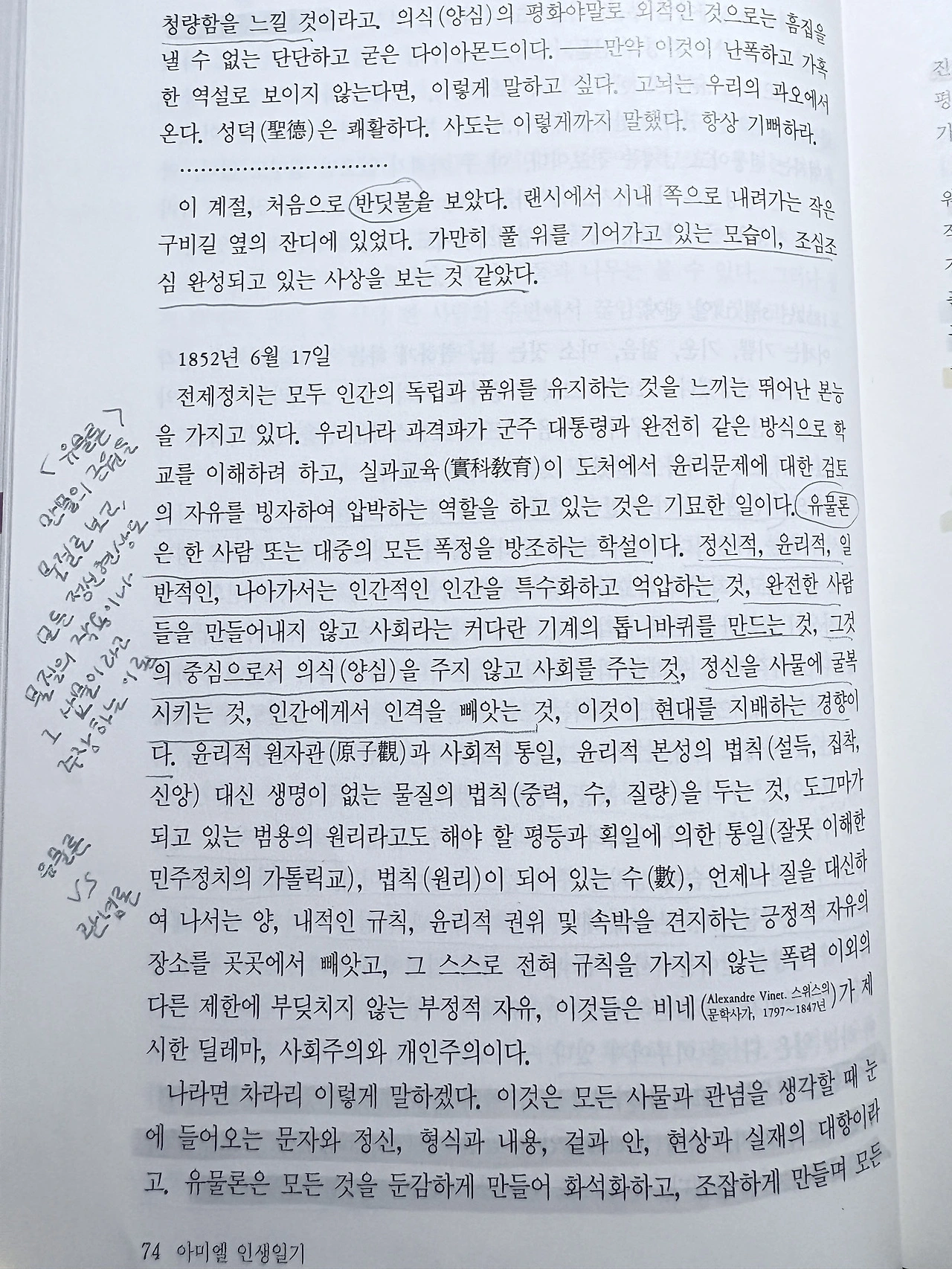 이게 도통 뭐라는 소리인지... 분명 "일기"인데 왜 이렇게 어려운 이야기를 하시는지요. 아미엘 교수님