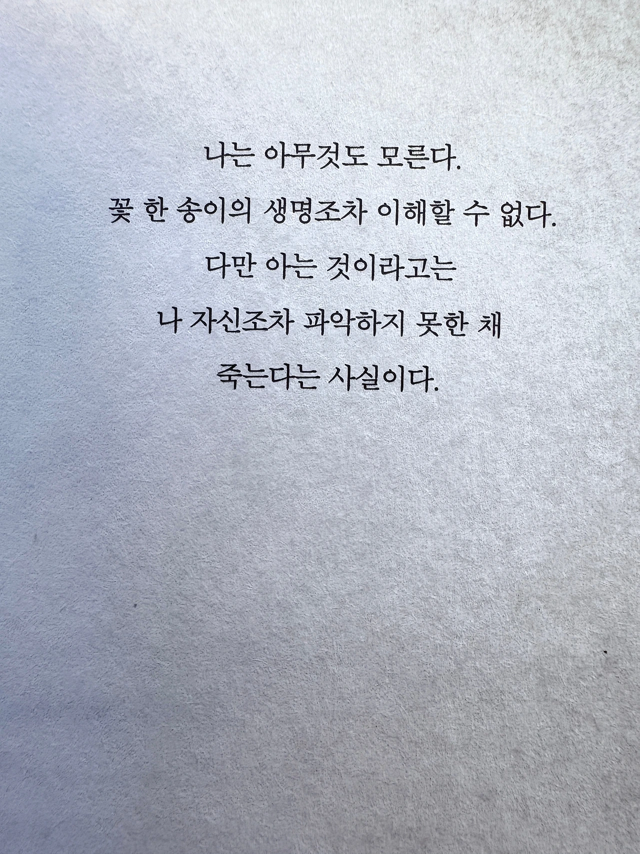 “나는 아무것도 모른다. 꽃 한 송이의 생명조차 이해할 수 없다. 다만 아는 것이라고는 나 자신조차 파악하지 못한 채 죽는다는 사실이다.”