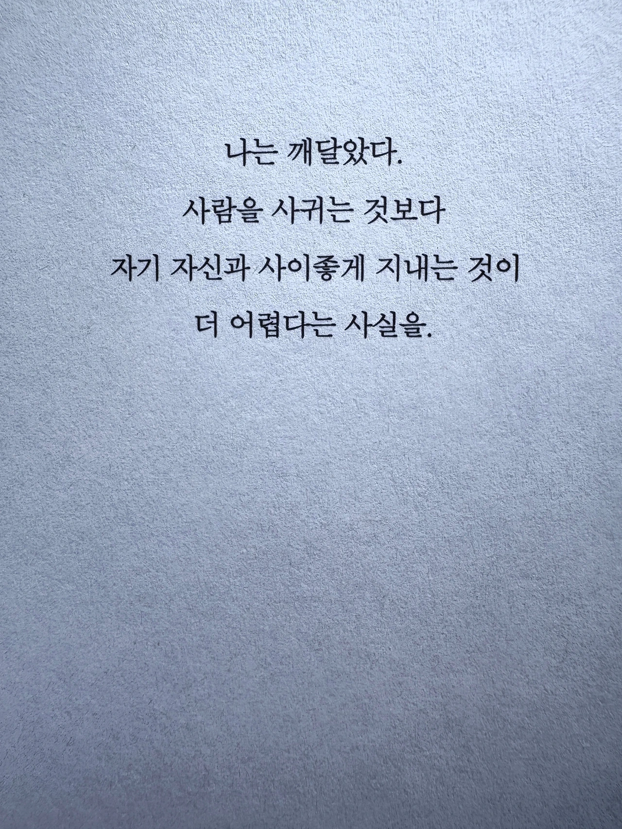 맞는 말이다. 자신과 잘 놀아주고 자신에게 친절하고... 어려서는 그런 걸 잘 몰랐는데 나이가 드니 자신에게 그리고 가족에게 다정하고 친절하지 못한다는 걸 깨닫는다.