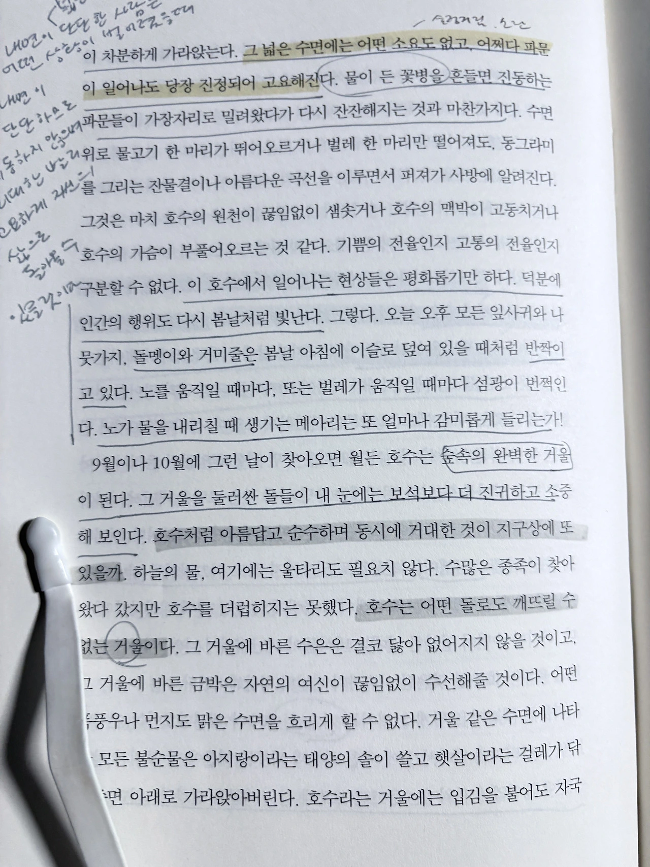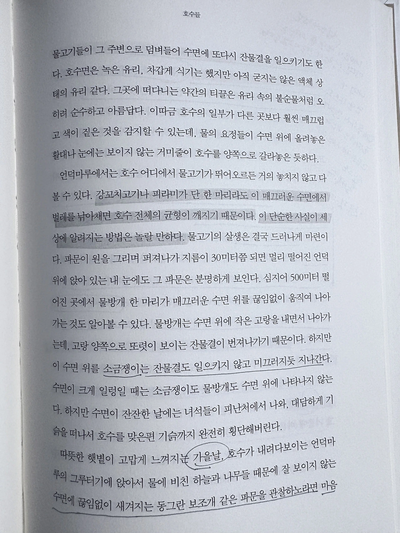 마지막으로 소로의 호수 예찬 문장을 추가해 보고 다음 책으로 넘어가겠다.