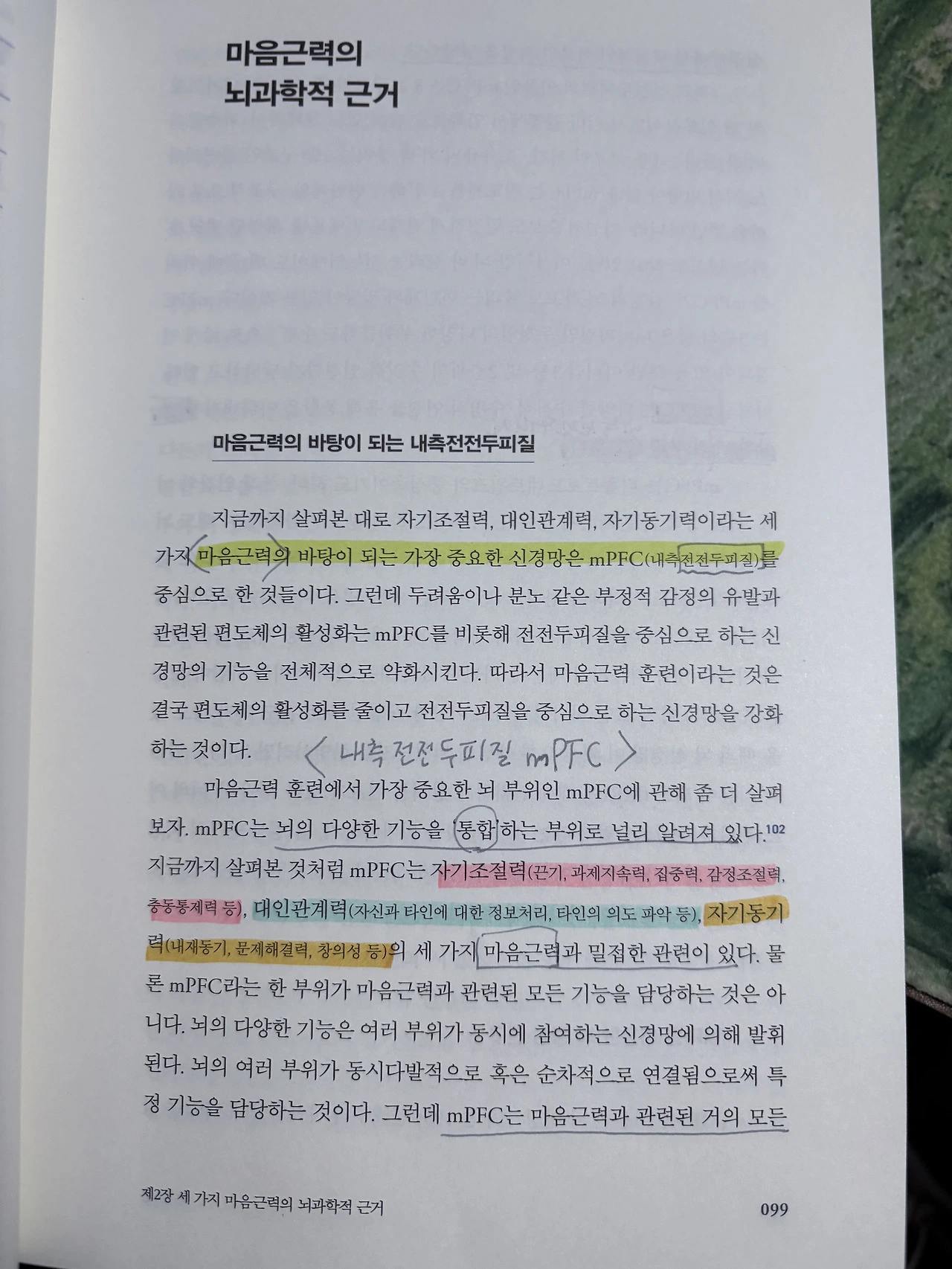 [마음근력의 뇌과학적 근거] 부분을 읽는다.