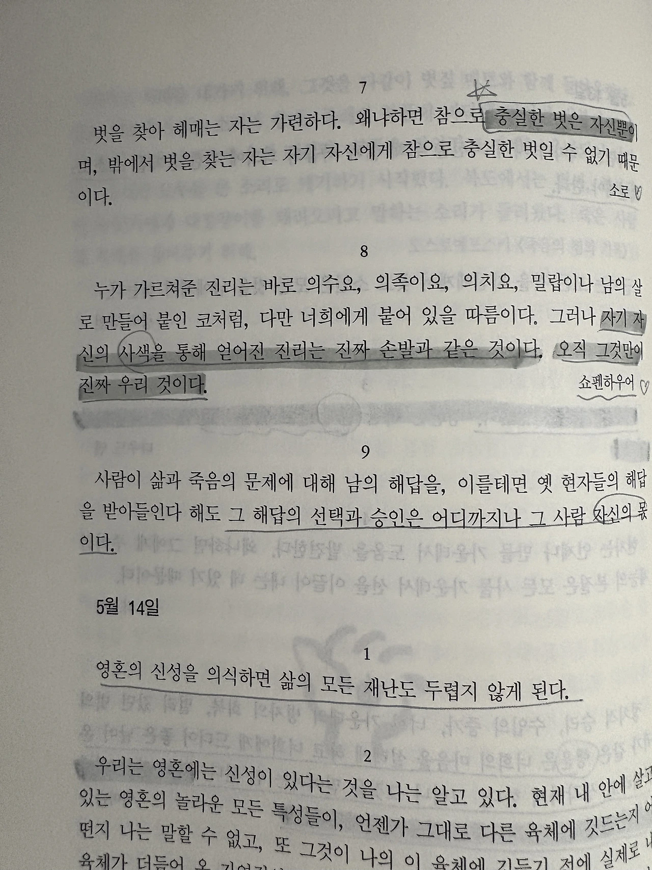 오늘 펼쳐 읽은 곳은 "자기 자신"에 대한 이야기가 주로 나온다.