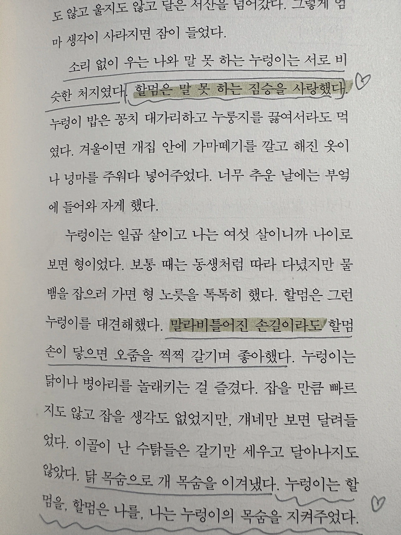 "할멈은 말 못 하는 짐승을 사랑했다" (247면)