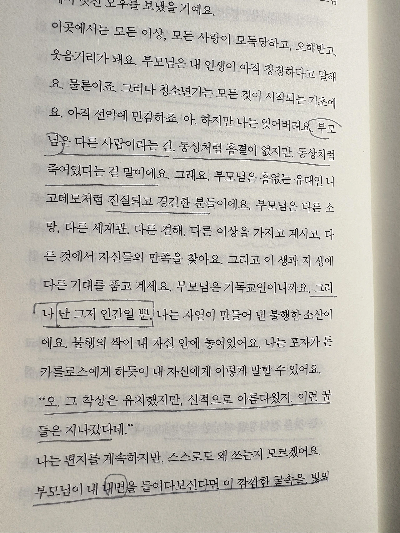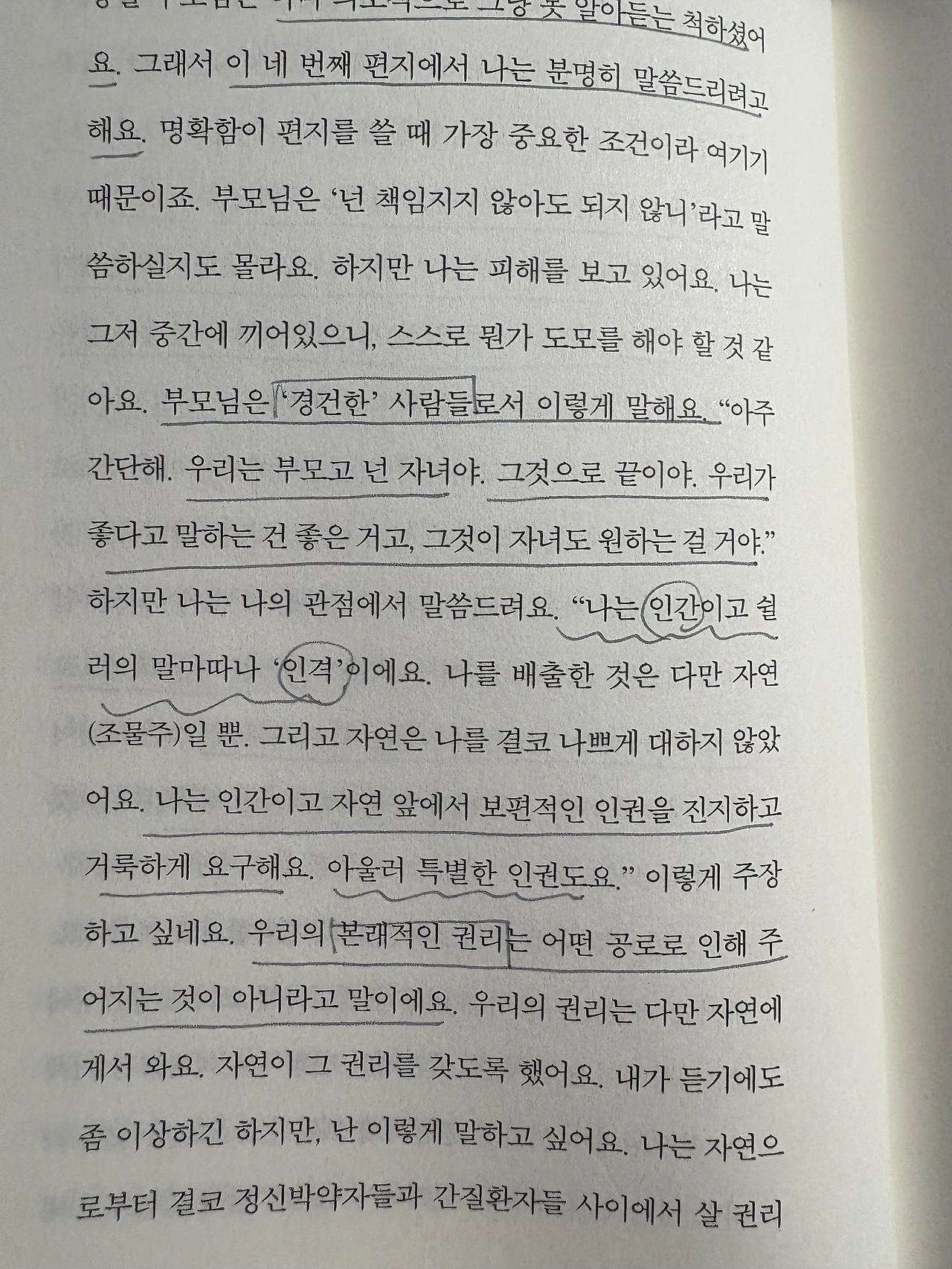 "아주 간단해. 우리는 부모고 넌 자녀야. 그것으로 끝이야. 우리가 좋다고 말하는 건 좋은 거고, 그것이 자녀도 원하는 걸 거야." (62면)