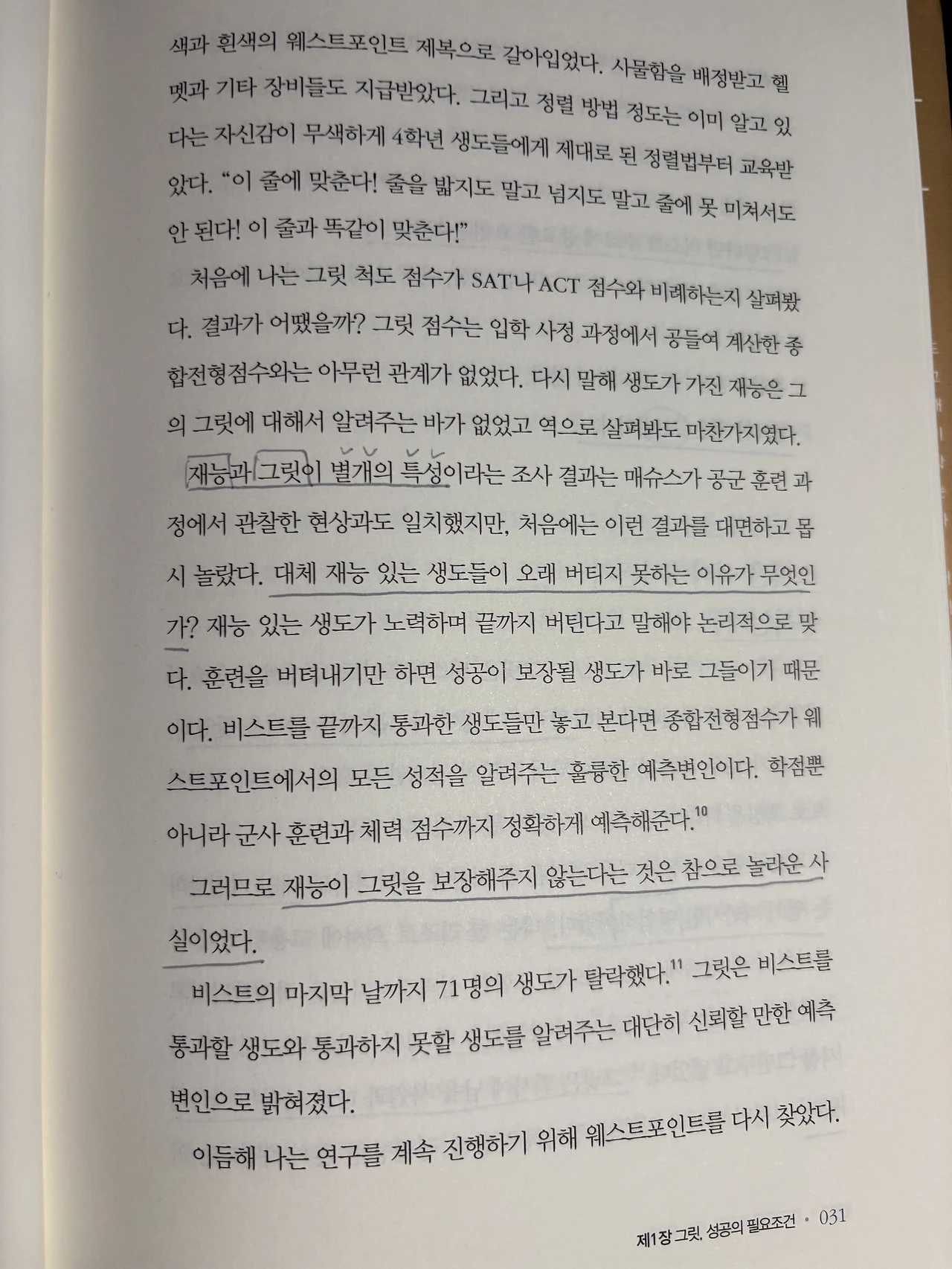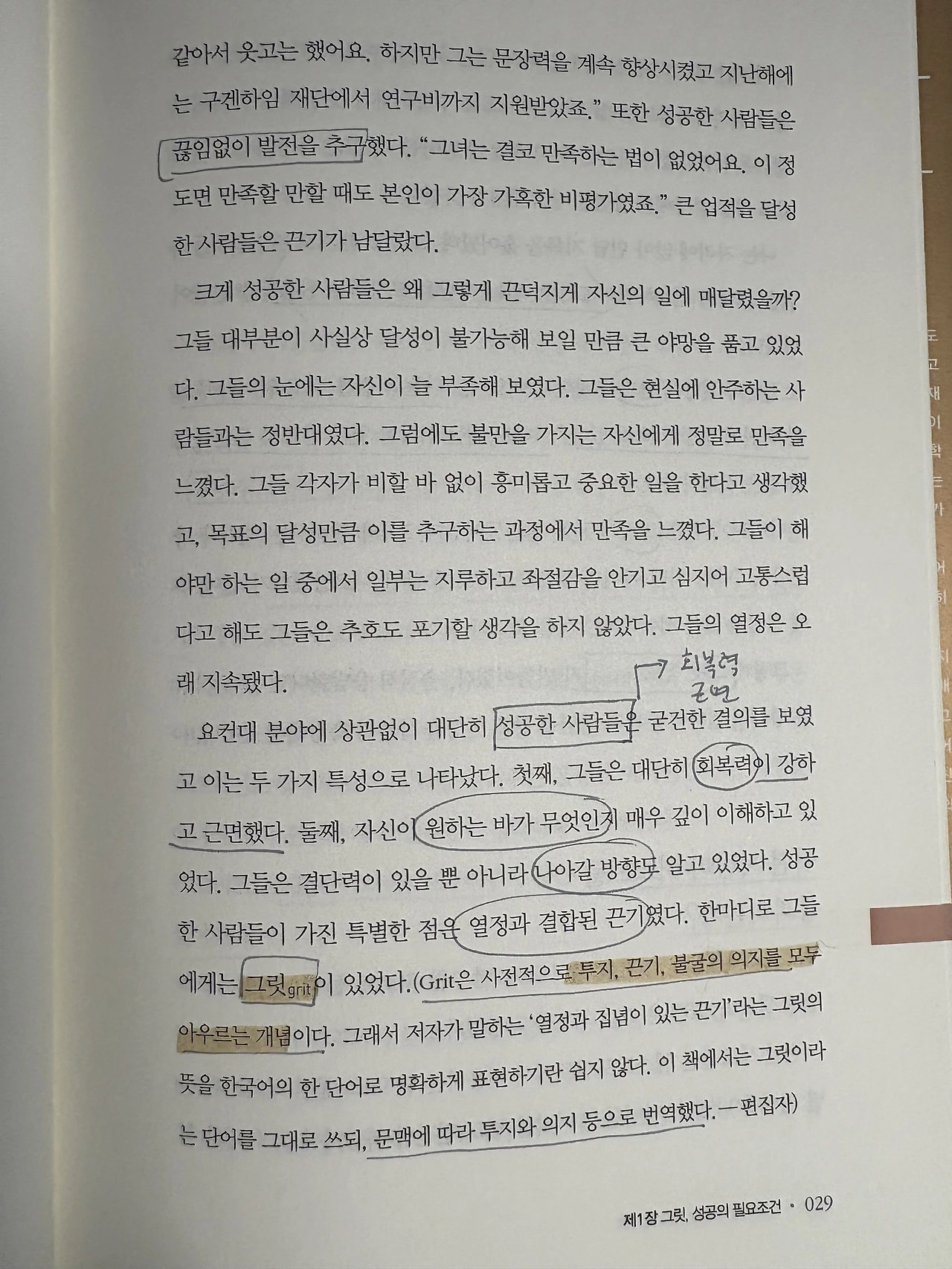 작가가 "그릿"이 있는 사람들을 묘사하는 질문을 읽어보며 나 자신의 문제점이 무엇인지 단 번에 들어왔다.