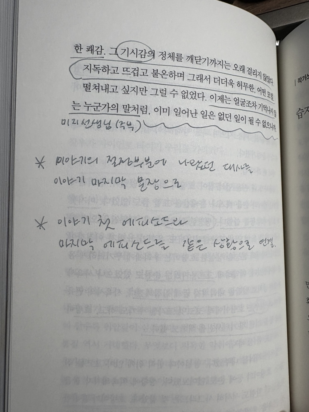 스토리가 대략 어떤 구조로 흘러갈 것인지는 보이기 때문에 작가가 말하려는 의도와 주제에 소재를 어떻게 구성했는지에 집중해서 읽었다.