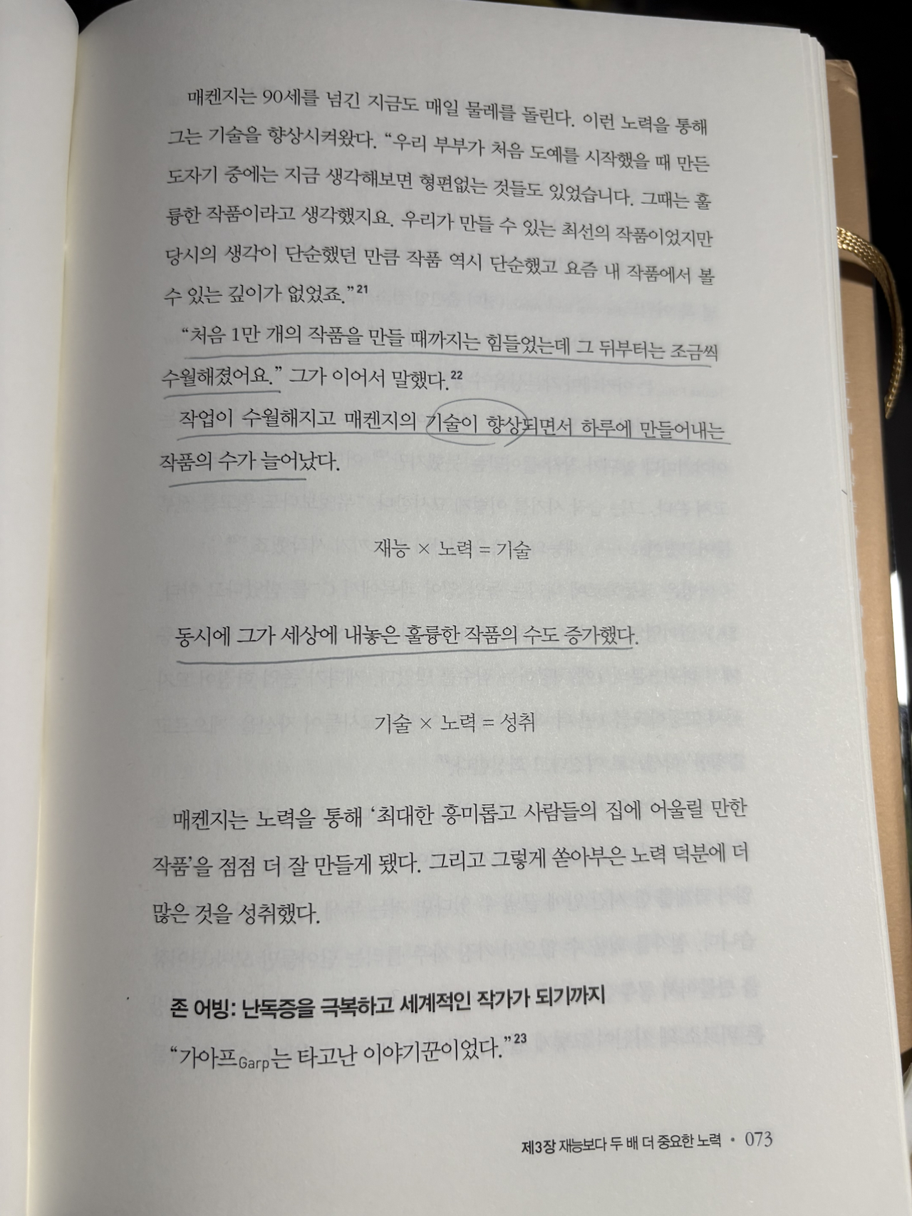 작가는 워렌 매켄지의 사례를 통해 “재능에서 성취에 이르는 등식”에 대한 이야기를 하고 있다.