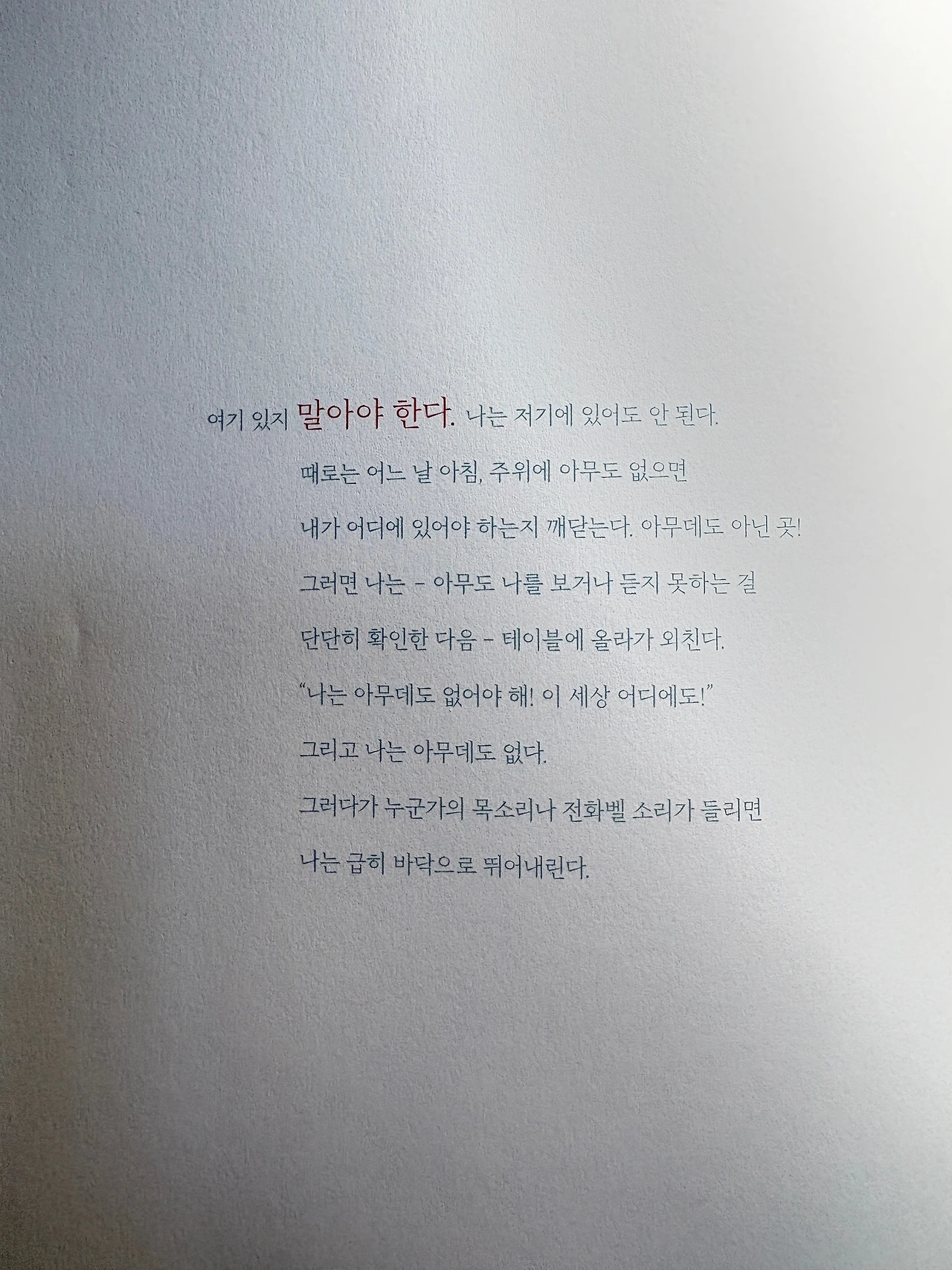 작가는 "해야 한다"라고 말속에 '과연 해야 할까'라는 물음표를 숨겨 놓은 것 같다.