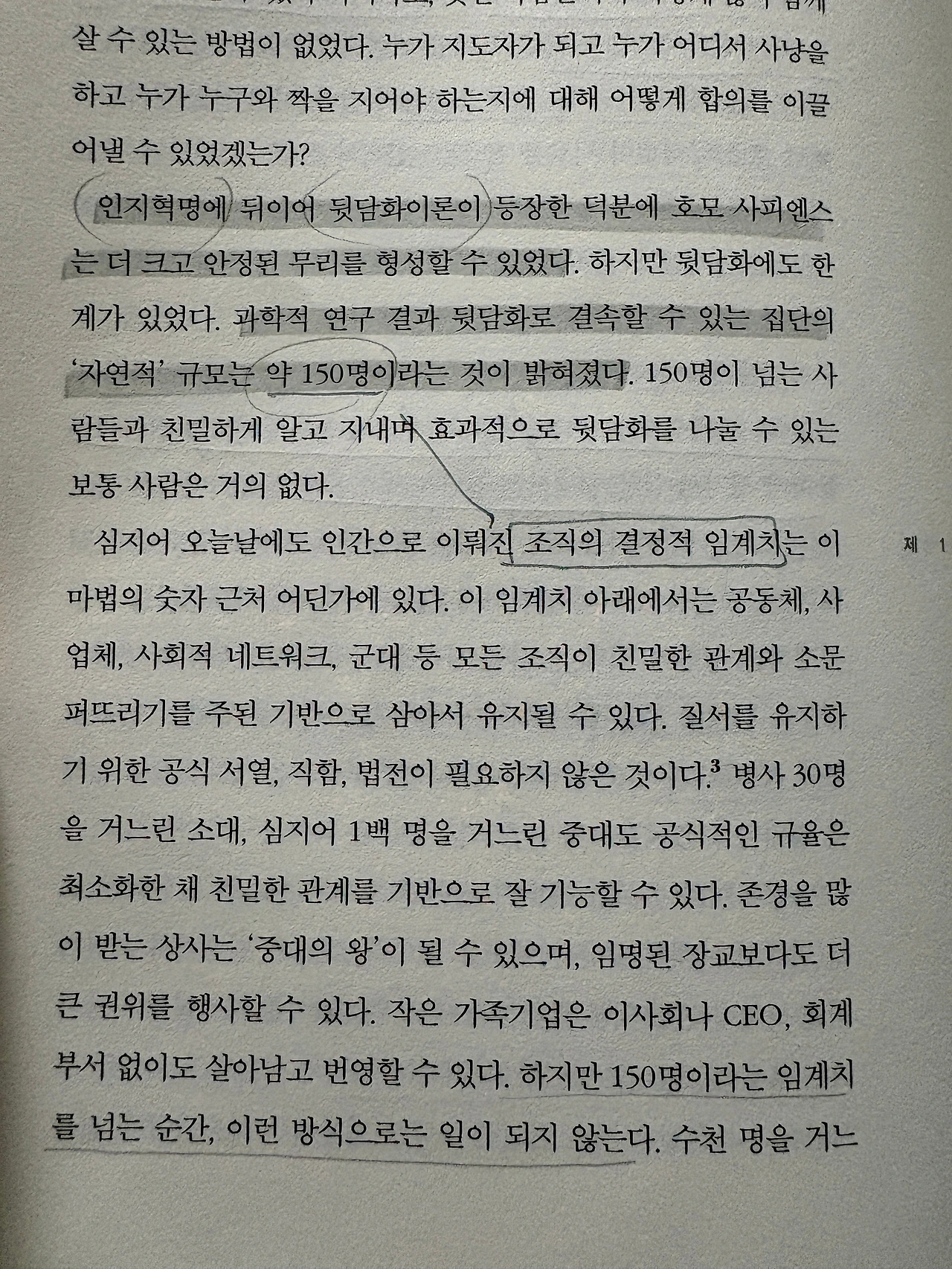 밑줄 그은 부분을 다시 읽어 봤는데 전반적인 이야기가 길게 서술되는 구조라서 이해를 위해 밑줄 친 전 후를 다시 읽어야 하는 나름의 고충이 있다.