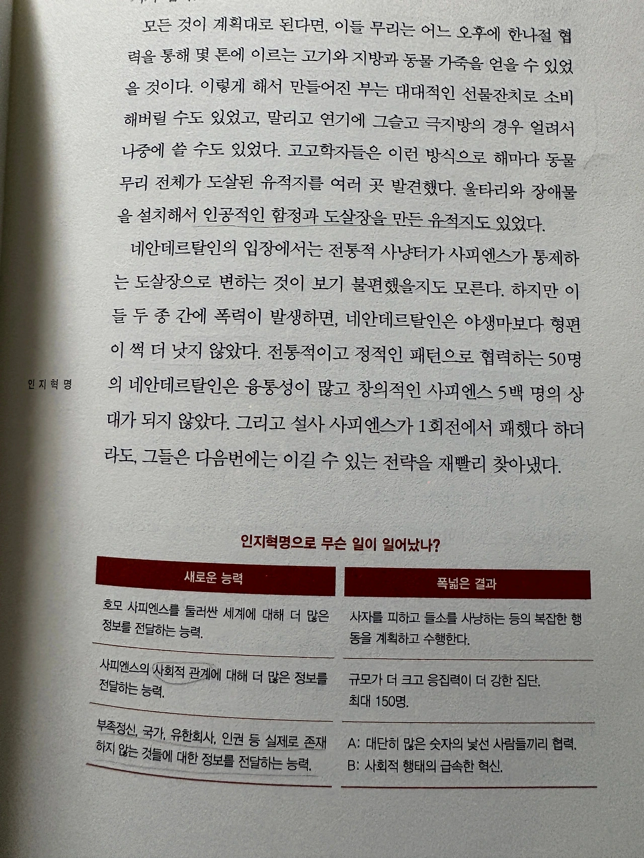 인지혁명 이후에는 생물학 이론이 아니라 역사적 서사가 호모 사피엔스의 발달을 설명하는 일차적 수단이 되었다.