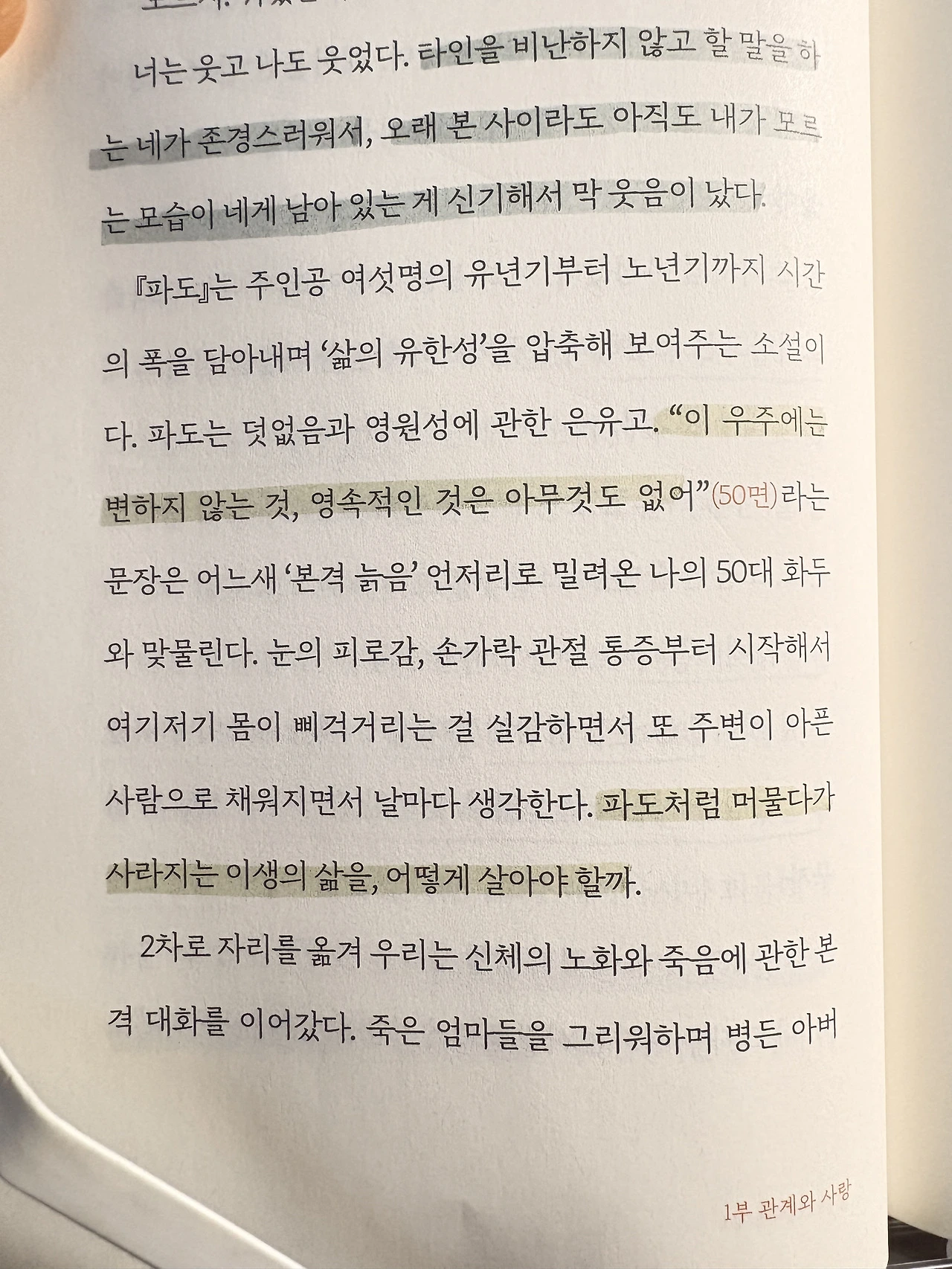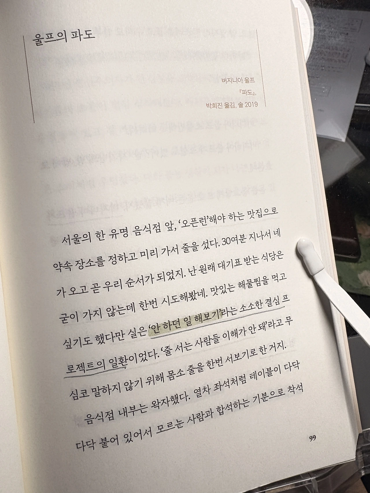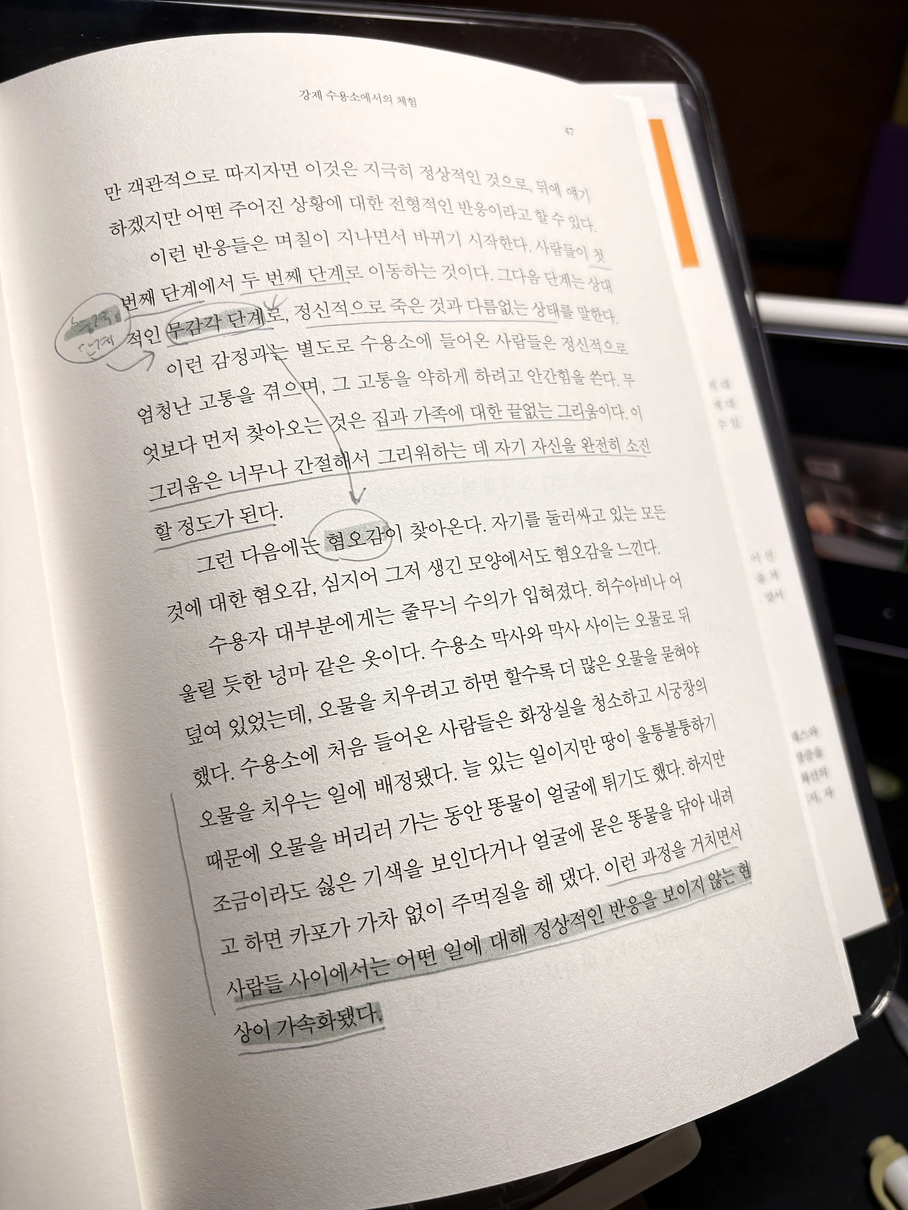 그 해답을 조금이라고 고민해 보는 오늘 하루를 살아보고자 다짐하며 밑줄을 긋는다.