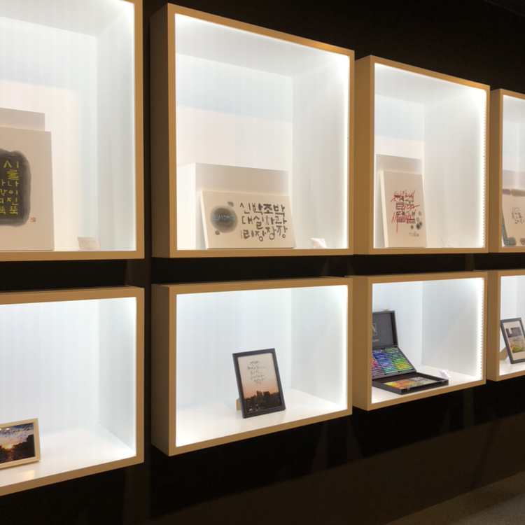 행사가 진행되는 서울스퀘어 1층 까렌다쉬에 도착하니 전시중인 아도르캘리그라피 작품들과 초대받은 이들의 자리가 마련되어 있었다. 친절하게 미리 준비해주신 다과와 음료로 괜히 했던 긴장도 풀고, 심심했던 입도 채울 수 있었다. (감사해요! 넘 맛있었어요)
