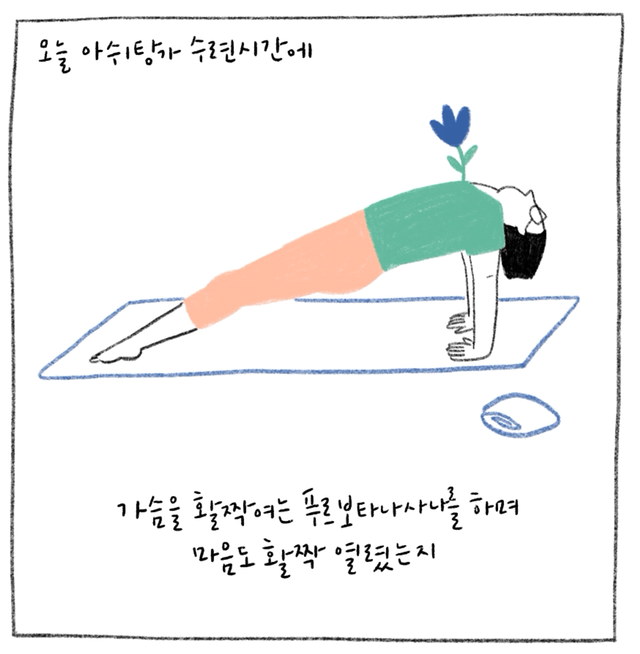 이야기를 그리고 요가를 나누는 버들입니다. <마음에도 근육이 붙나 봐요>, <물건이 건네는 위로>, <오늘도 내 마음에 들고 싶어서>를 그리고 썼습니다.