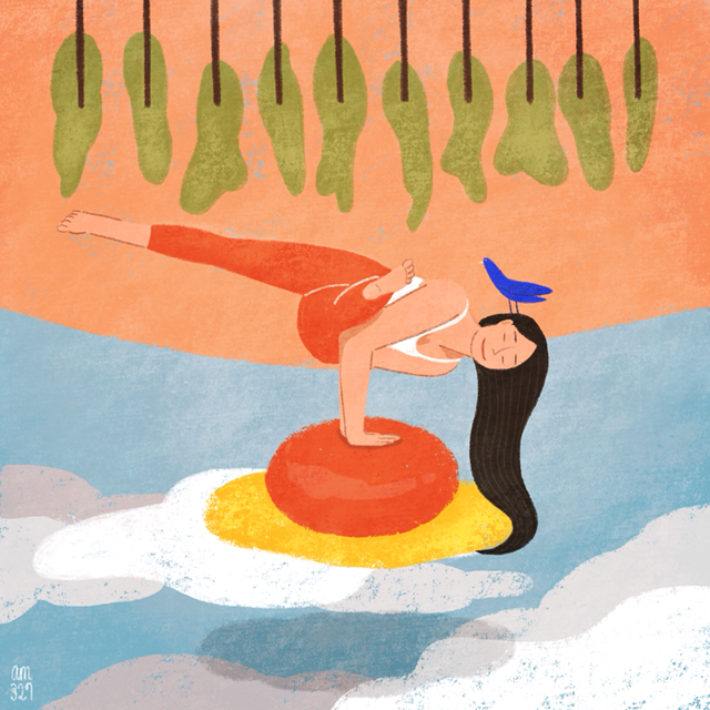 매트 위에서는 낮은 세상을 만나게 된다. 거리를 걸을 때에는 멀리에 있는 땅을, 매트에 서는 순간에는 아주 가까이에서 만나게 되고 가끔 발로 디디고 보던 세상 대신 손으로 땅을 밀며 세상을 보거나 거꾸로 풍경을 보게 된다. 손은 가끔 발이되고, 어느 날에는 팔뚝과 머리가 발이 되어주기도 한다. 에카파다코운딘야아사나를 할 때 다리를 이리저리 움직여 앞에 올 다리는 바꾸는 일이 아직 쉽지 않다. 넘어졌던 기억을 떠올리며 어떻게든 넘어지지 않을 위치에서 버티고 싶어진다. 땅과 가까이 있으니 넘어져보아야 거기에서 거기인데 넘어지는 일은 해도해도 넘어지기 직전까지 넘어지기 싫고 넘어진 다음에는 한숨이 나온다. 오늘 나는 다리를 팔처럼 가볍게 움직여보자 생각한다. 손을 발처럼 견고하게 바닥에 뿌리내려보자 생각한다. 넘어지면 다시 일어날 수 있게 마음에도 힘을 채운다.