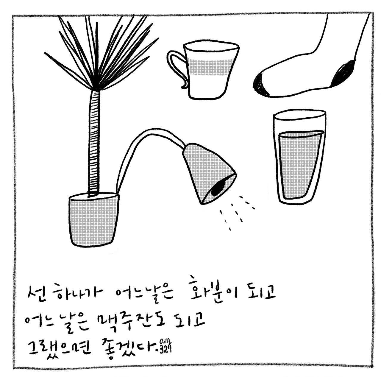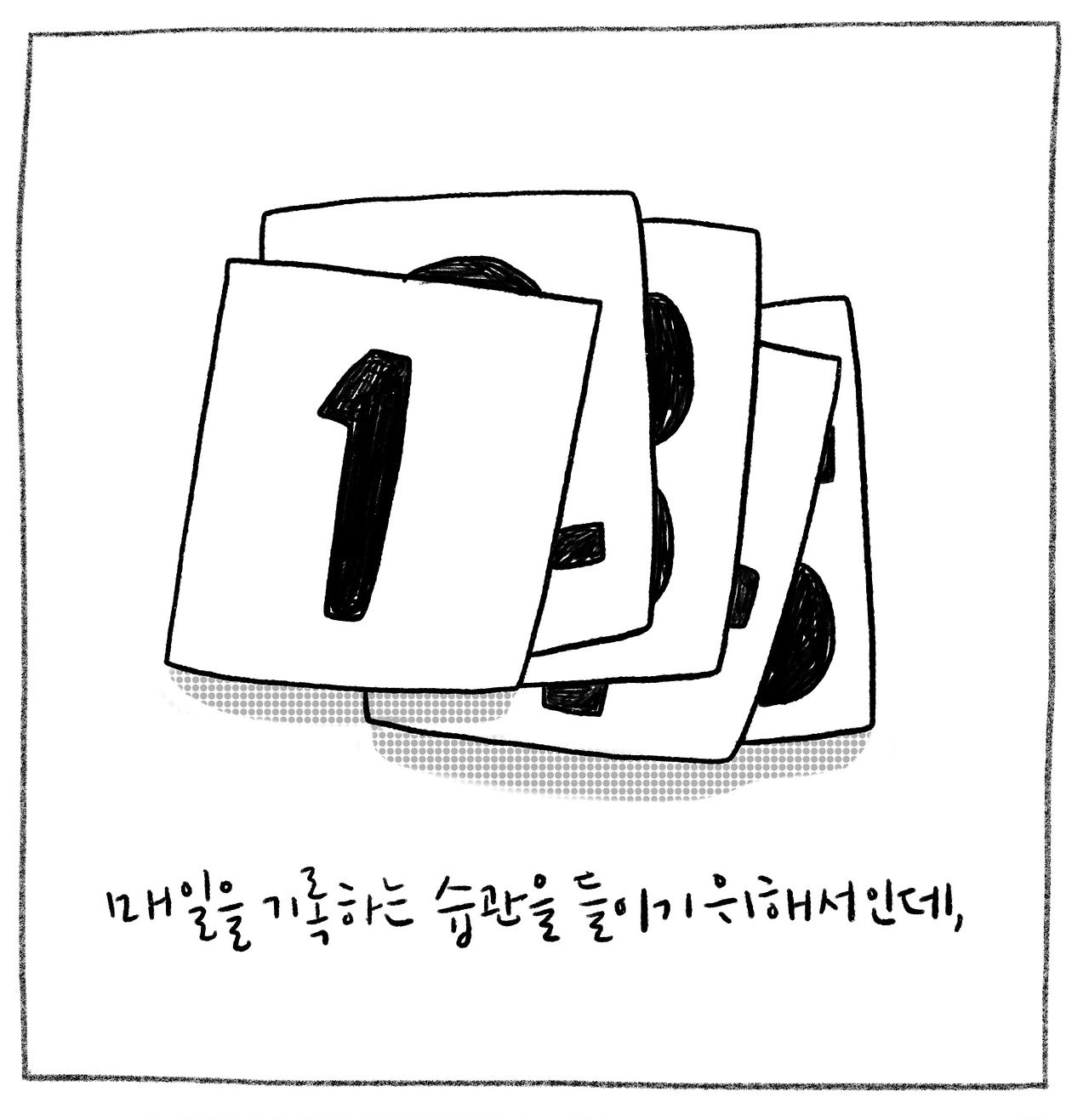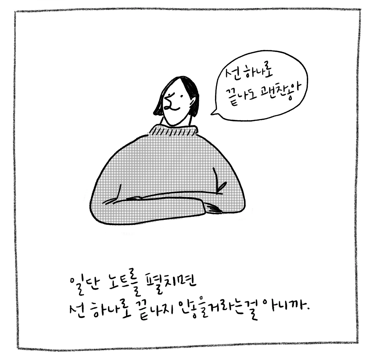 언제나 중요한 건 첫걸음이다. 생각을 이야기로 풀어 가능한 오래 오래 그리고 싶다고 생각하다가 그리겠다는 다짐으로 잠드는 밤.