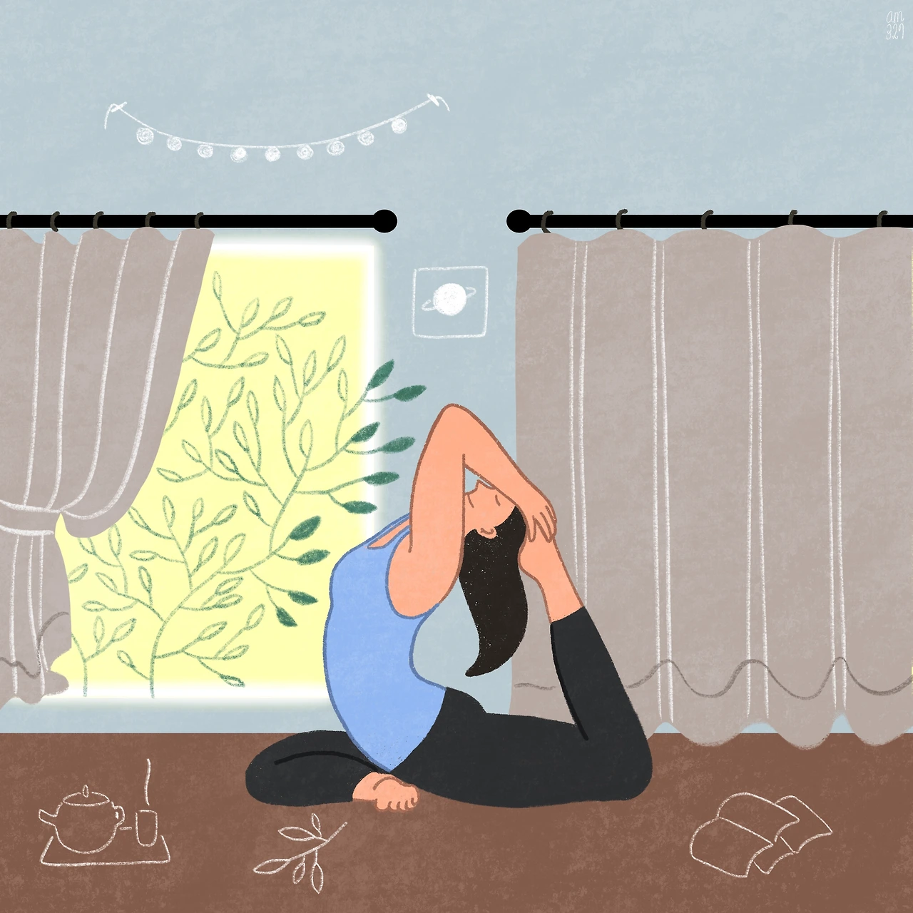 에카파타라자카포타사나를 하면서 좁아지는 몸의 뒷면에 더 집중하고 있는 날에는 두려움이 커진다. 허리의 커브를 깊게 만들 때 가까워진 근육들에 상처가 나면 어쩌나 하는 생각도 하게 되고, 할 수 없는 것에 대한 마음의 소리가 커진다. 그러나 만개하는 꽃잎처럼 활짝 펼쳐진 몸의 앞면에 더 집중하는 날에는 설렘이 찾아온다. 부드럽게 넓어지는 것에 마음을 두기 시작하면 숨의 결이 고와지고 나는 이제 시작일 뿐이니 더 다가가 보고 싶다는 마음의 소리가 커진다.
