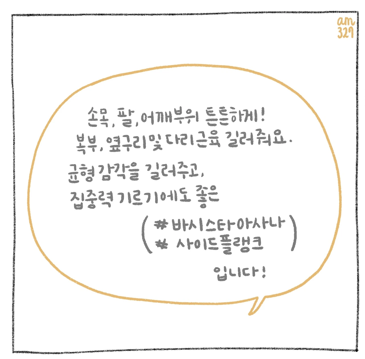 업로드하면서 생각난 김에 오늘도 바시스타아사나를 했어요. 지탱하는 팔을 미세하게 구부려주면 과신전을 막고 몸으로 힘이 타고 들어가는 느낌이 들어요!
