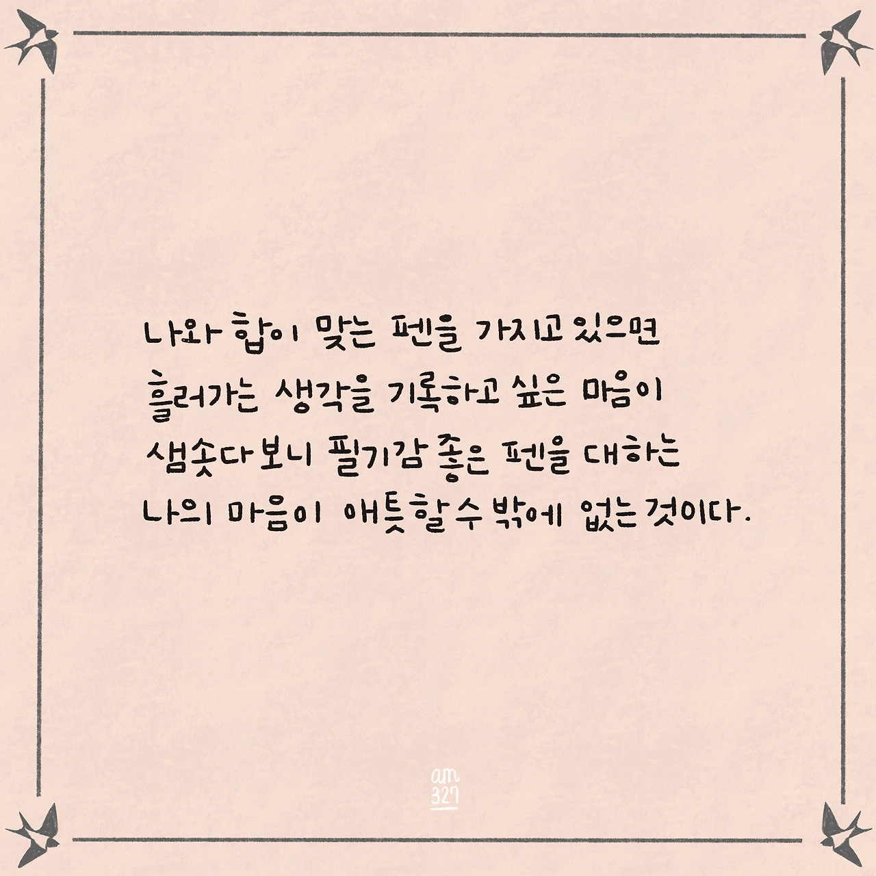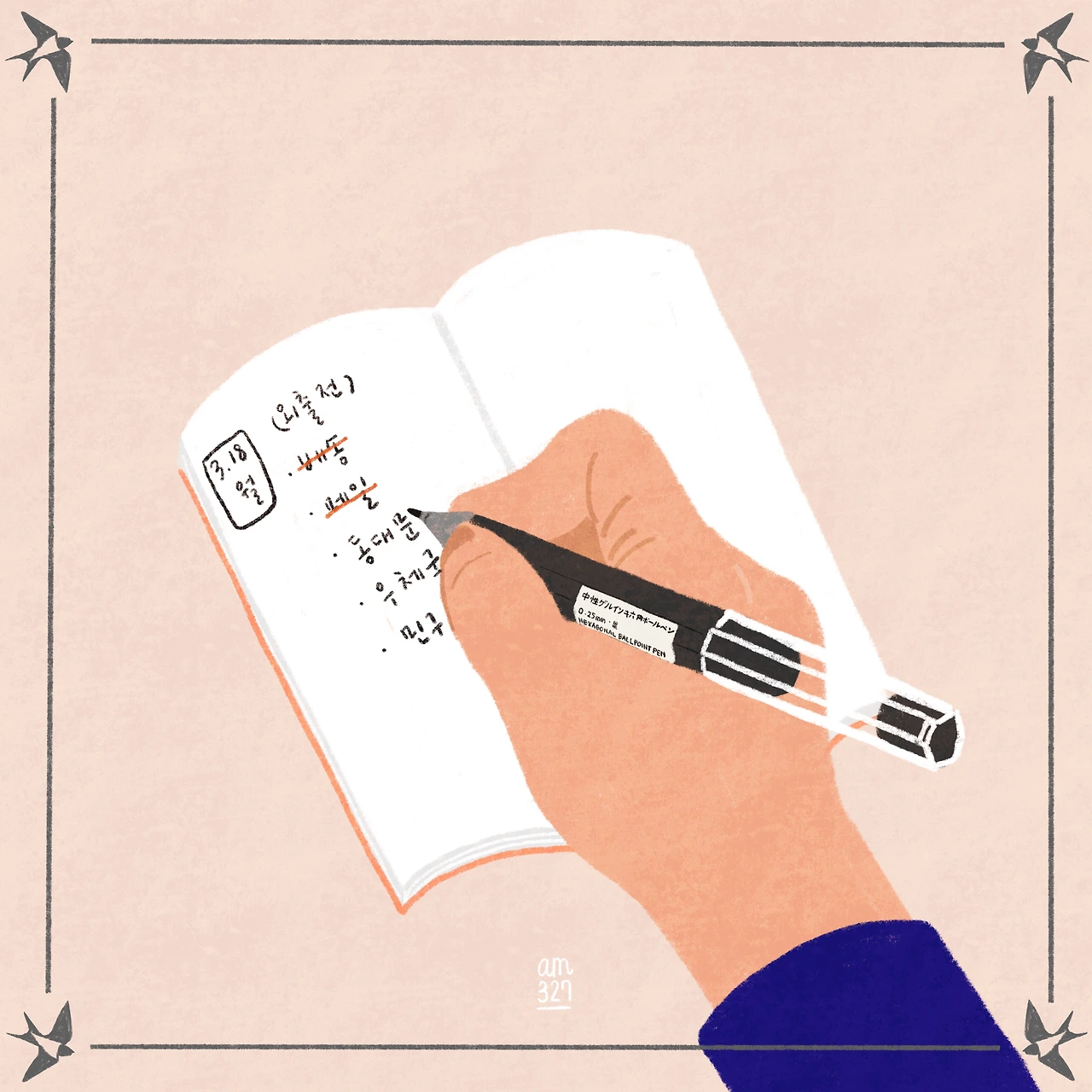 한번 마음에 든 펜과 종이가 생기면 주구장창 그것만 쓰다 보니 벌써 몇 년째 육각형 모양의 뚜껑을 가진 0.25mm 얇은 필기감의 펜을 사용하고 있다. 한 번은 이 펜을 다 쓰게 됐는데, 무X양품에 갈 일이 없어 차일피일 미루며 집에 있는 다른 펜으로 며칠 생활을 해봤다. 그런 시간을 보내면서 내가 이 펜으로 인해 얼마나 유익한 필기(?) 생활을 해왔는지 새삼 깨닫고는 날을 잡고 매장에 방문해서 망설이지 않고 다섯 자루를 구입해서 쟁여놓고 뿌듯해하던 기억이 난다.