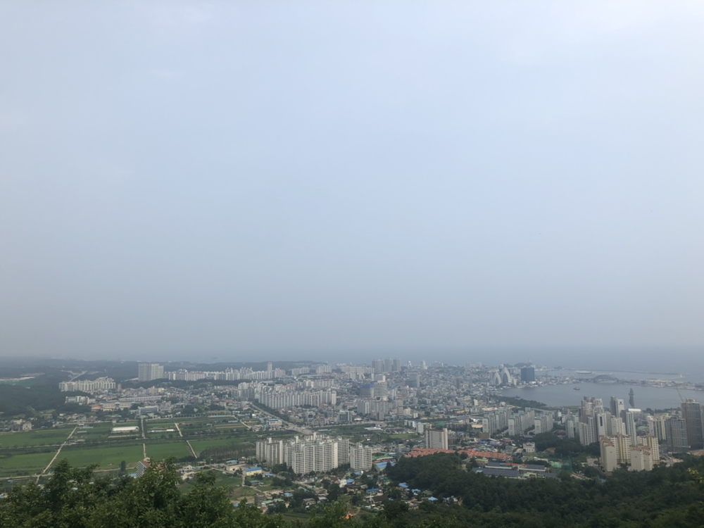 일어나서 스트레칭 후 플랭크를 5 분하고 크림치즈가 발린 과일 토스트를 먹고 산에 올랐다.(행복의 맛!) 속초의 전경이 보이는 곳까지 내 걸음으로 숙소에서 정확히 삼십 분이 걸리니 부담 없이 가볍게 오르기가 좋다. 산 입구에 가기까지 양 옆으로 시원하게 뻗은 소나무숲길이 나를 보호해주는 것만 같다.