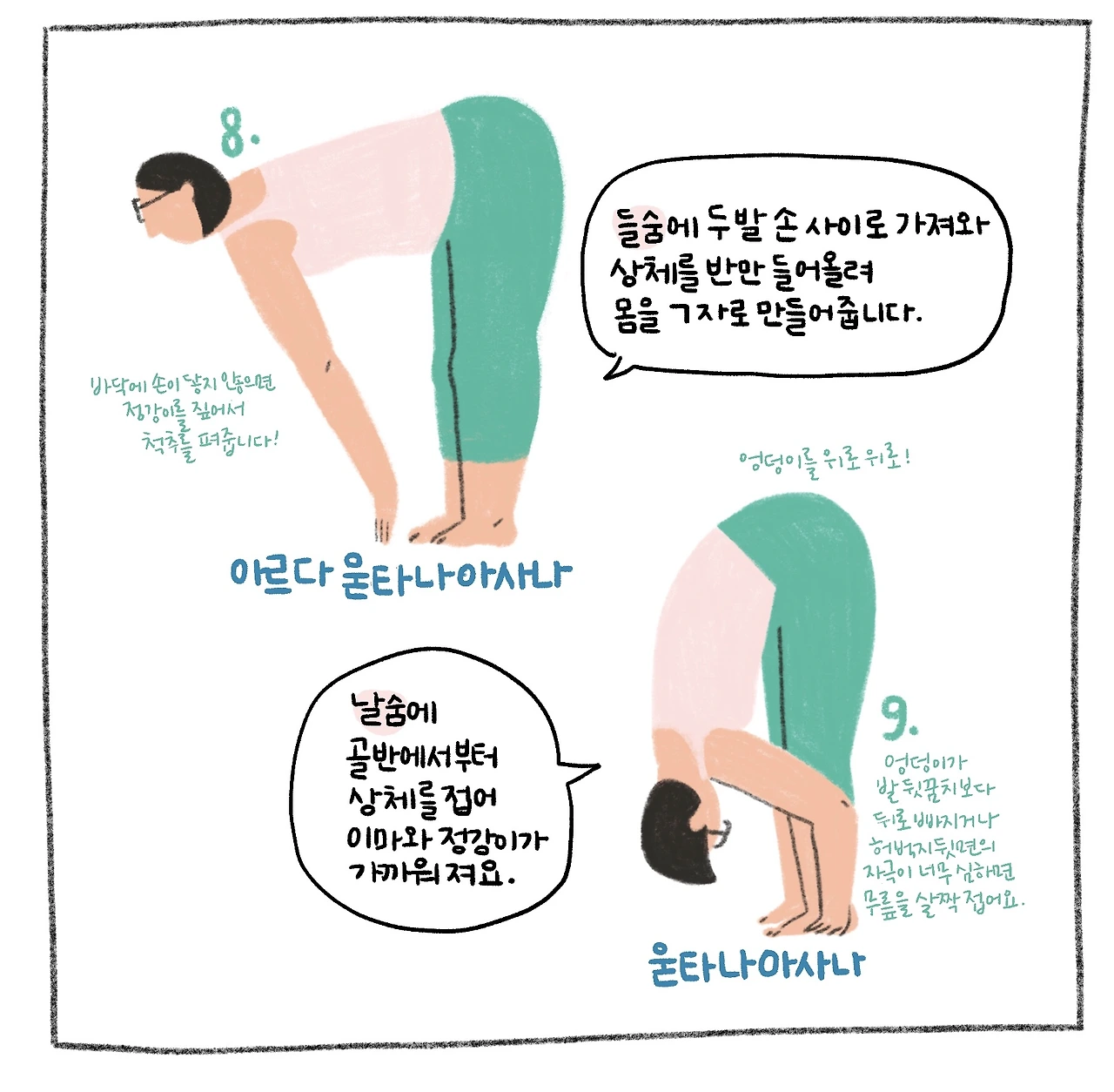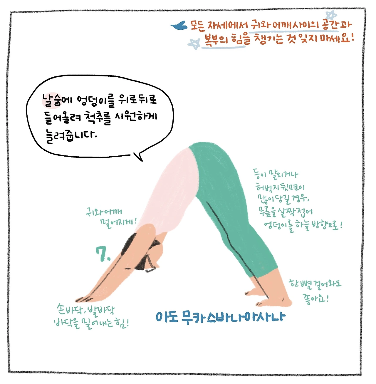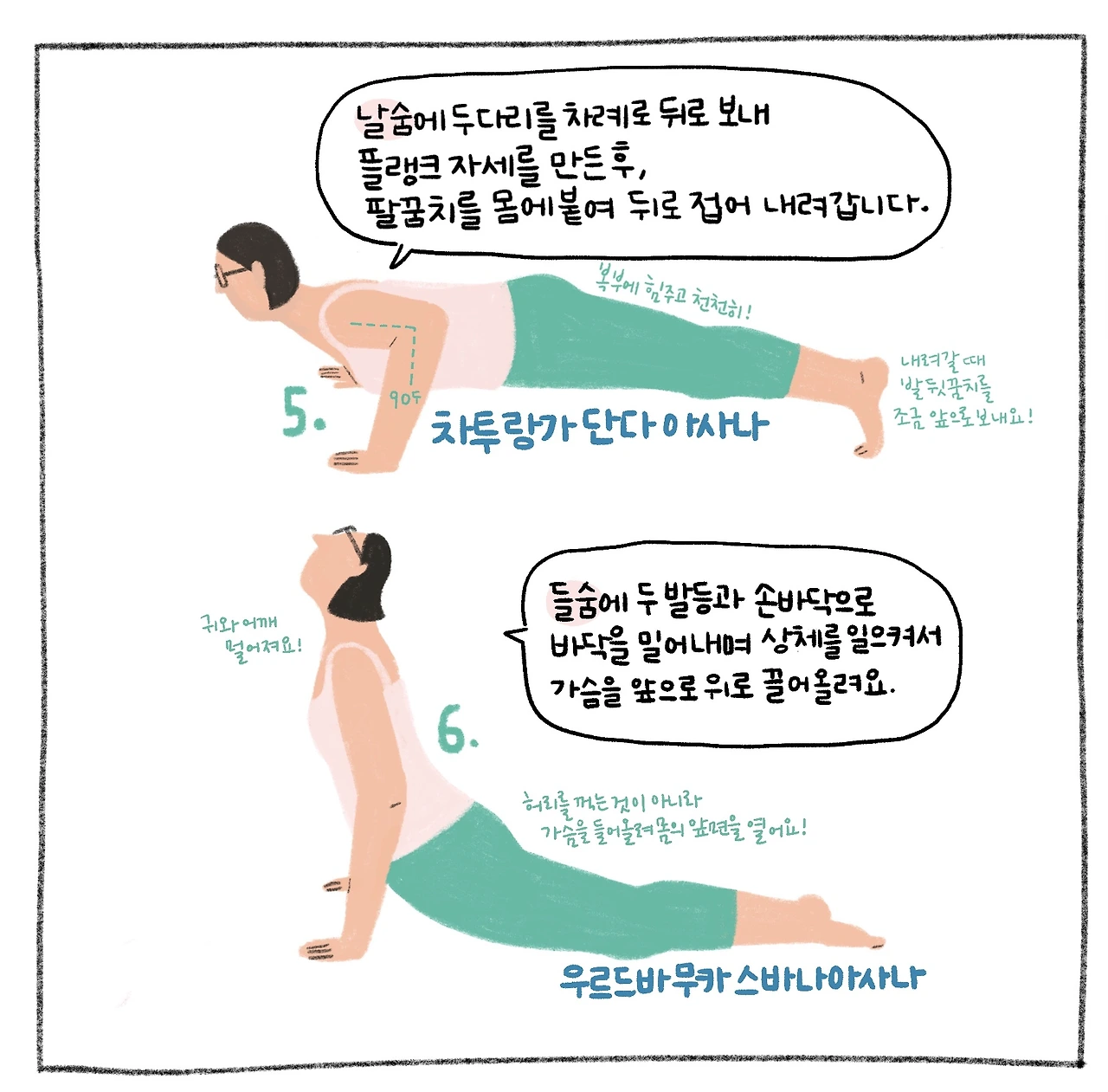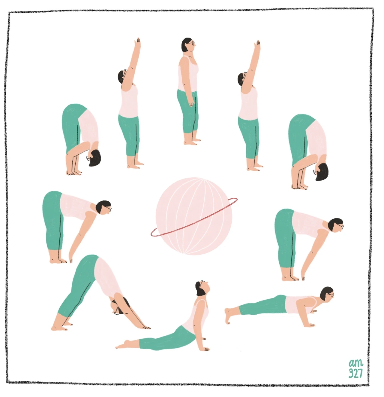 선 자세 위주로 구성되어 큰 근육을 사용해 몸에 열을 일으키는 태양 경배 자세입니다. 이열치열!
